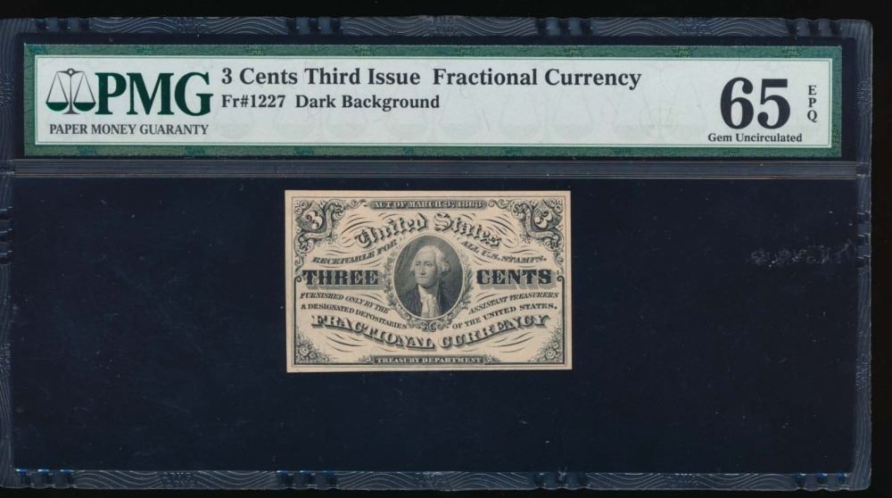 One 3 Cent Third Issue Fractional Note PMG 65EPQ.
