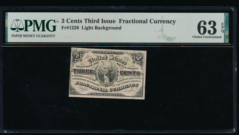 One 3 Cent Third Issue Fractional PMG 63EPQ.