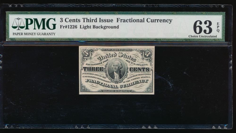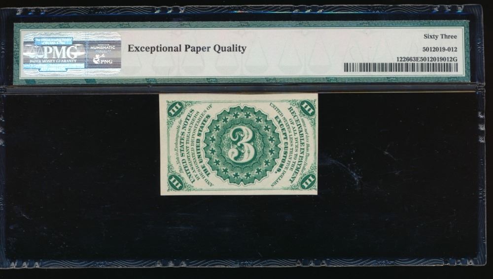 One 3 Cents Third Issue Fractional Note PMG 63EPQ.