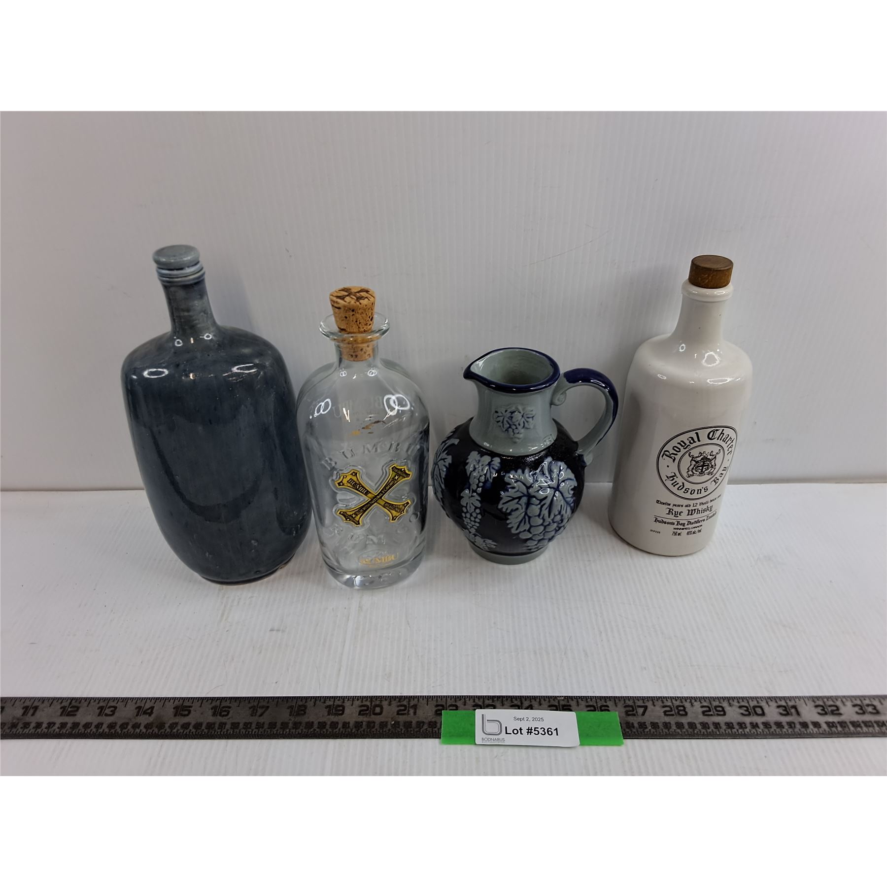 (3) Ceramic Bottles up to 11″ (1) Glass Bottle With Cork