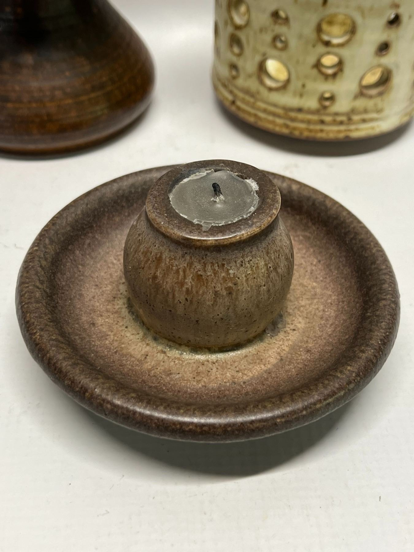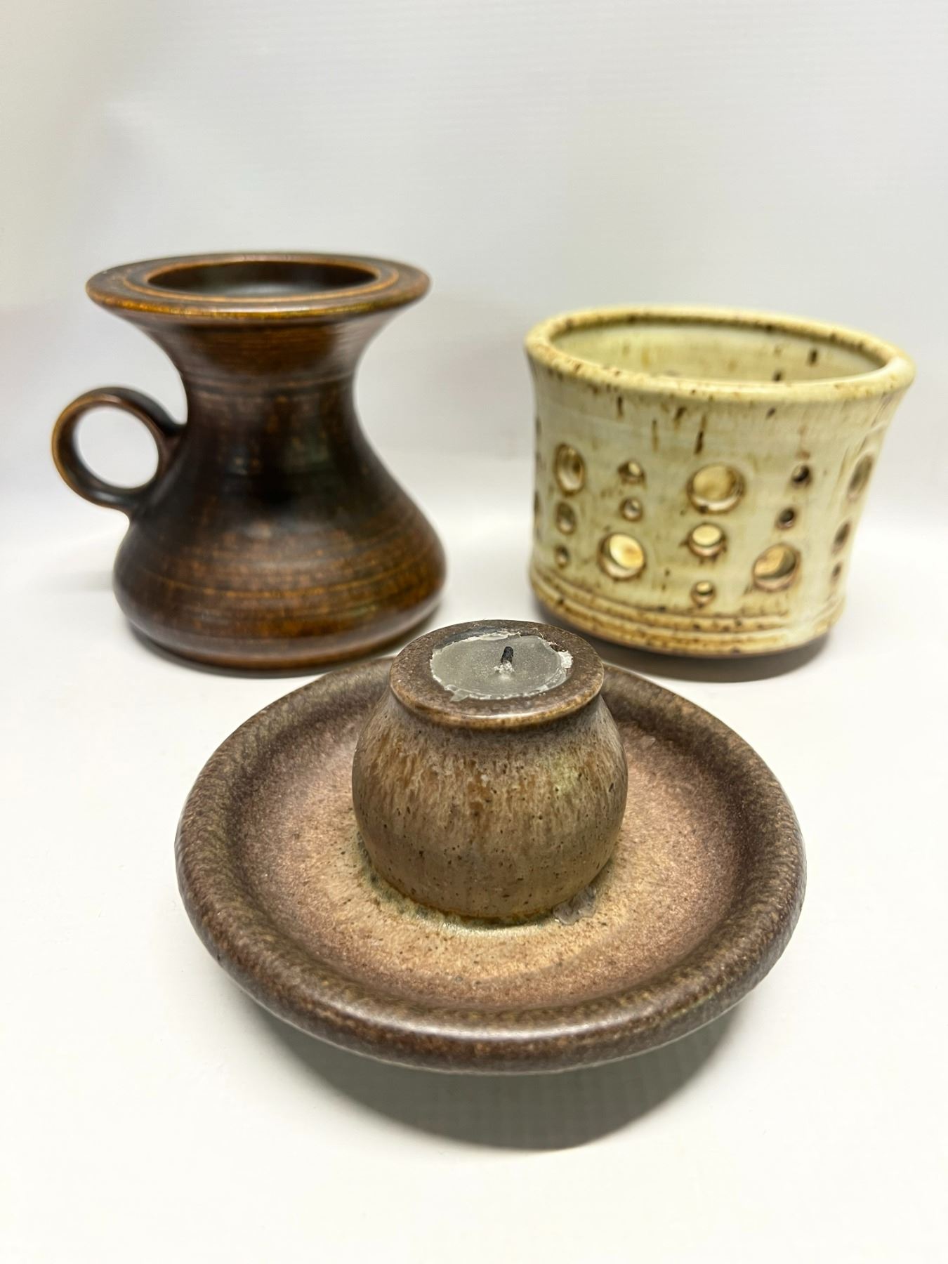 3 Ceramic Stoneware? Candle holders (tallest approx: 4"T 5"W)
