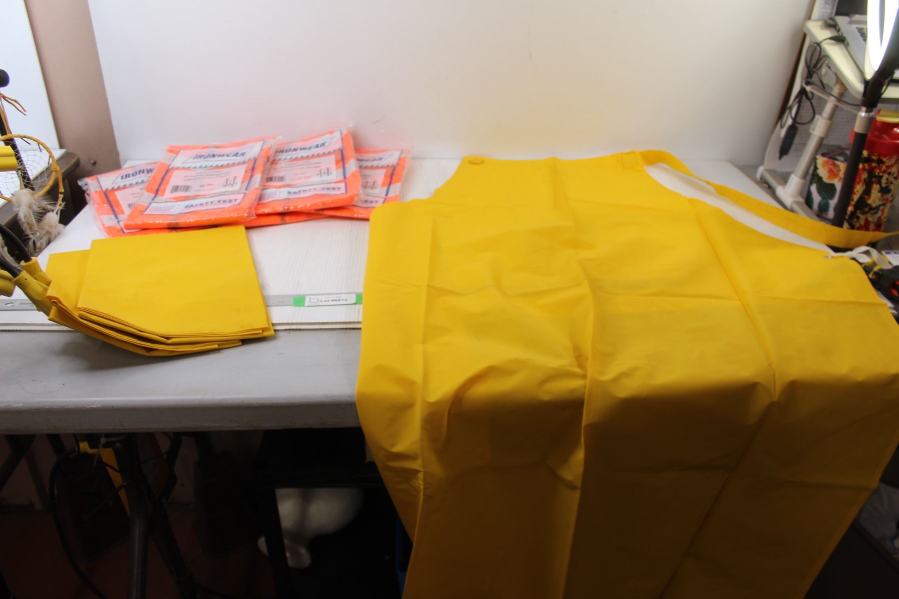 (3) Chemical Aprons, (5) OSFA Safety Vests
