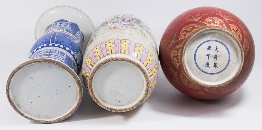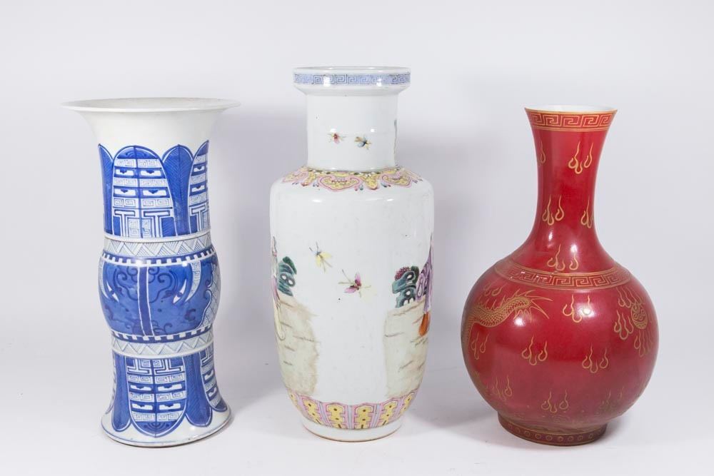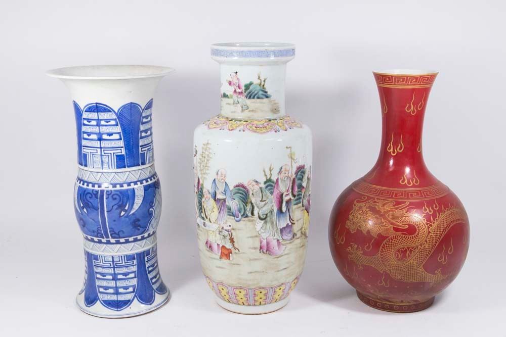 One red dragon, one blue & white, and one with figures. Contemporary. Tallest approx. 17" H.