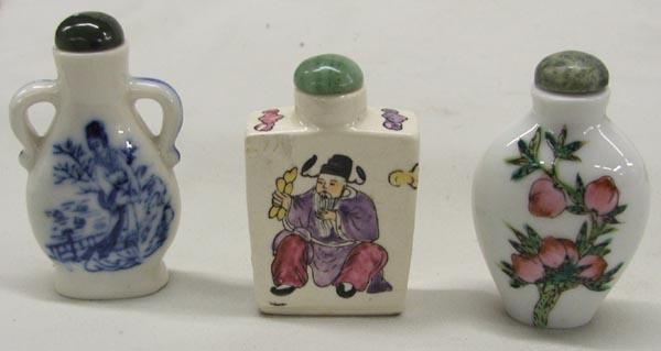 3 Chinese Snuff Bottles, dauber broken on one lid, all marked on bottom, largest measures approx. 3.75'' x 1.75''. SHI $20.