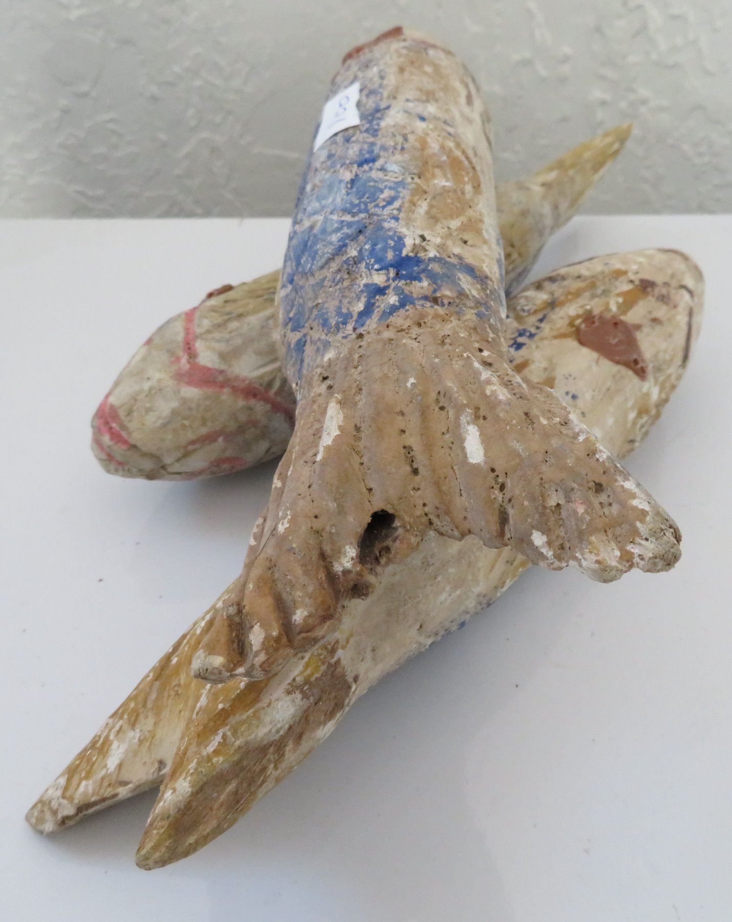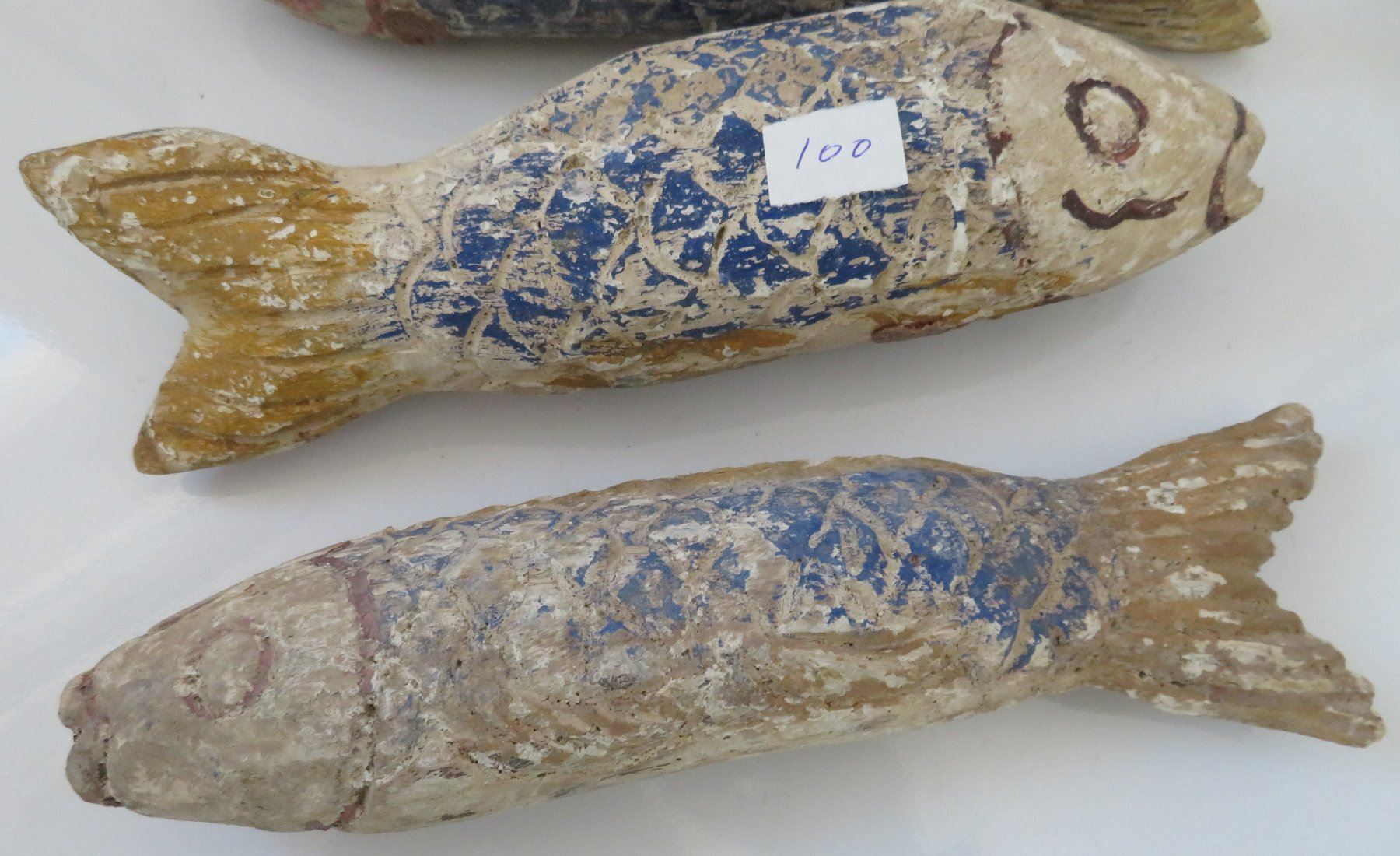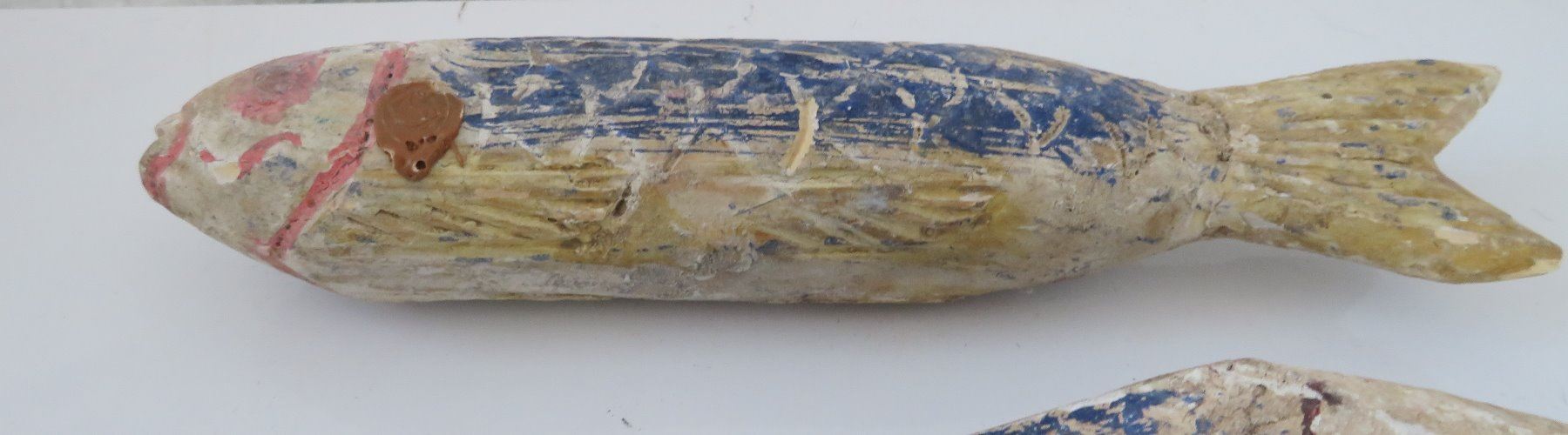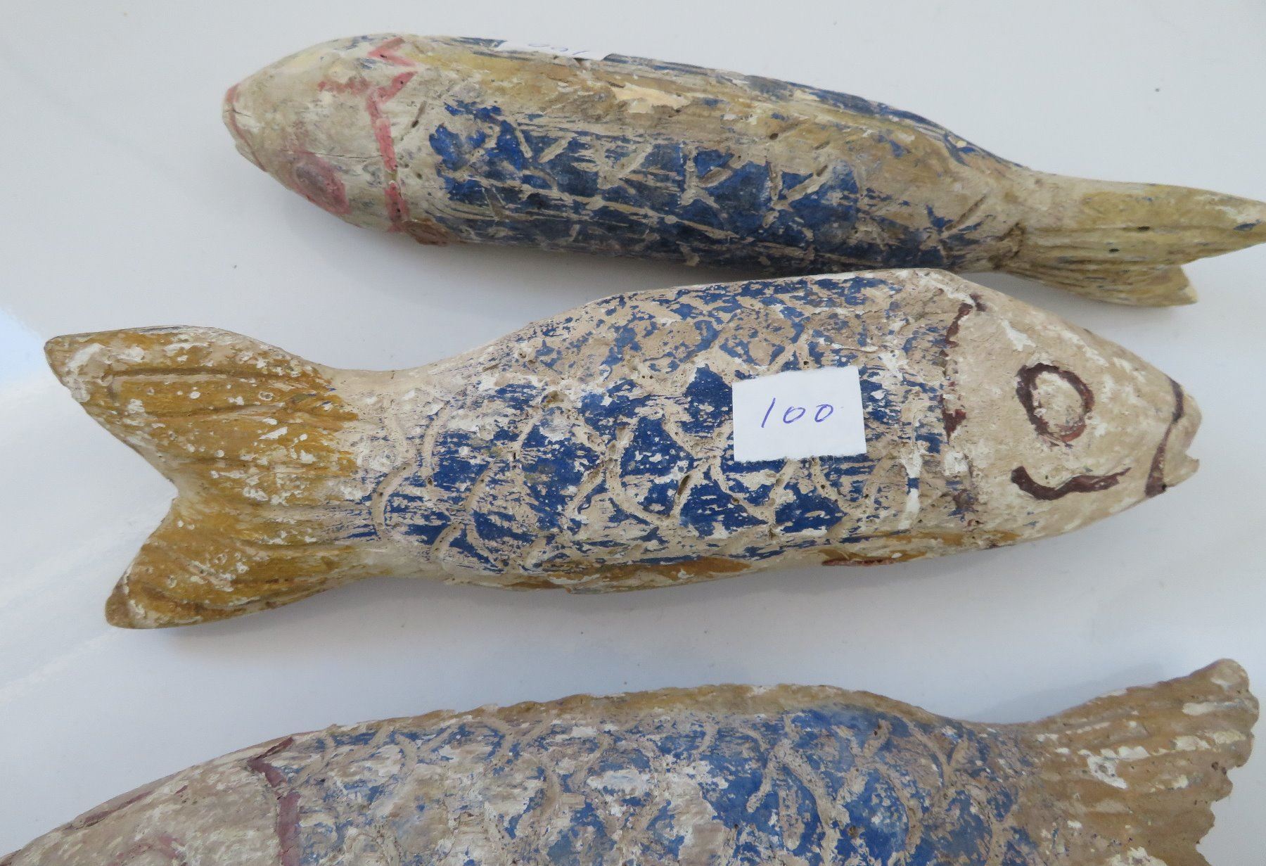 3 Chinese Wood Coy, Ming dynasty. Made of wood and paint, the items measure from 11 1/2" x 2 1/2" each. China. Bright colors. Condition: Some wear, see images. Shipping: $30.00 w/insurance and signature, due to value.