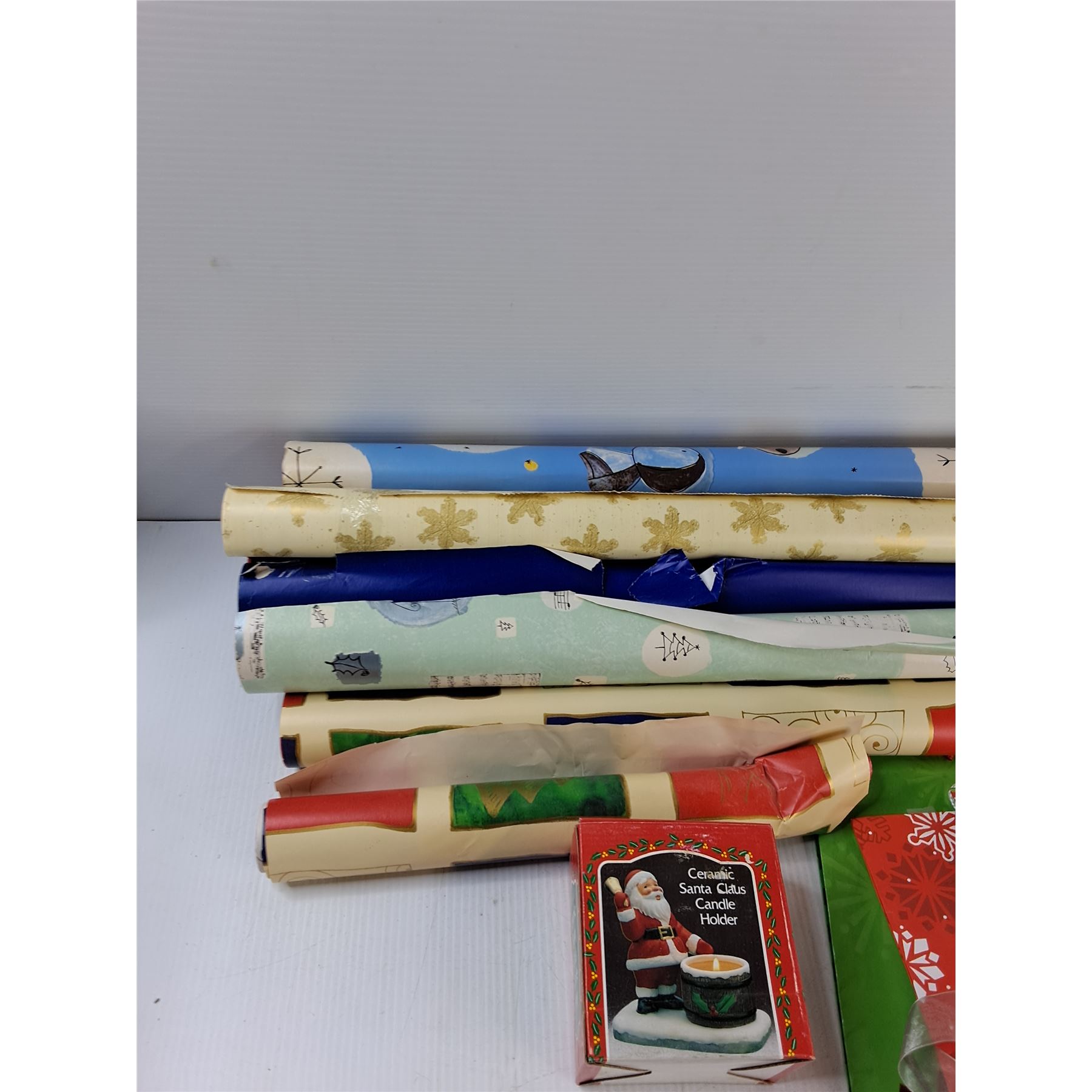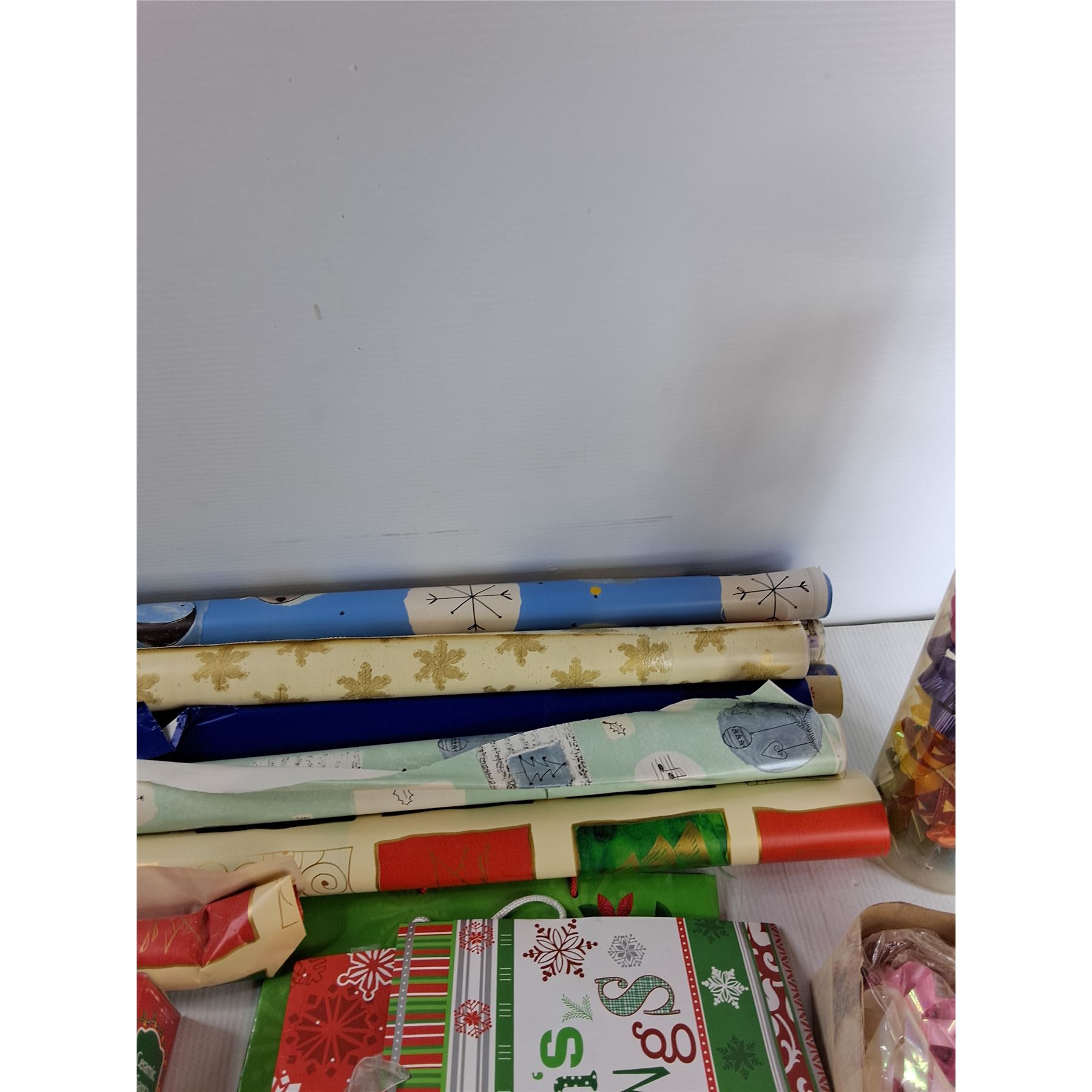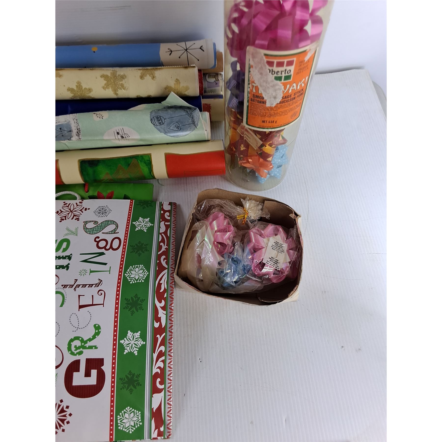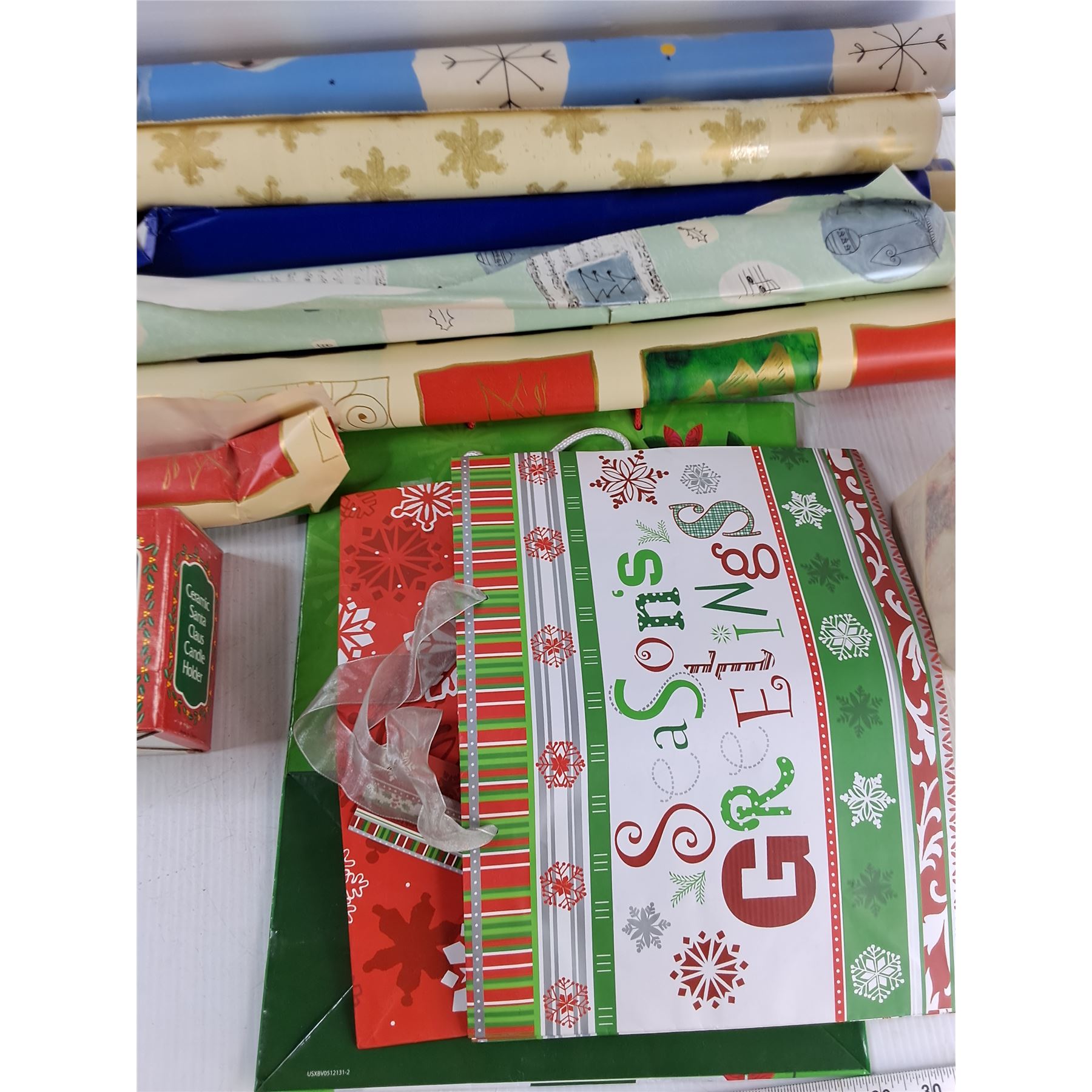 (3) Christmas Bags, Christmas Bows, Assorted Wrapping Paper, Misc