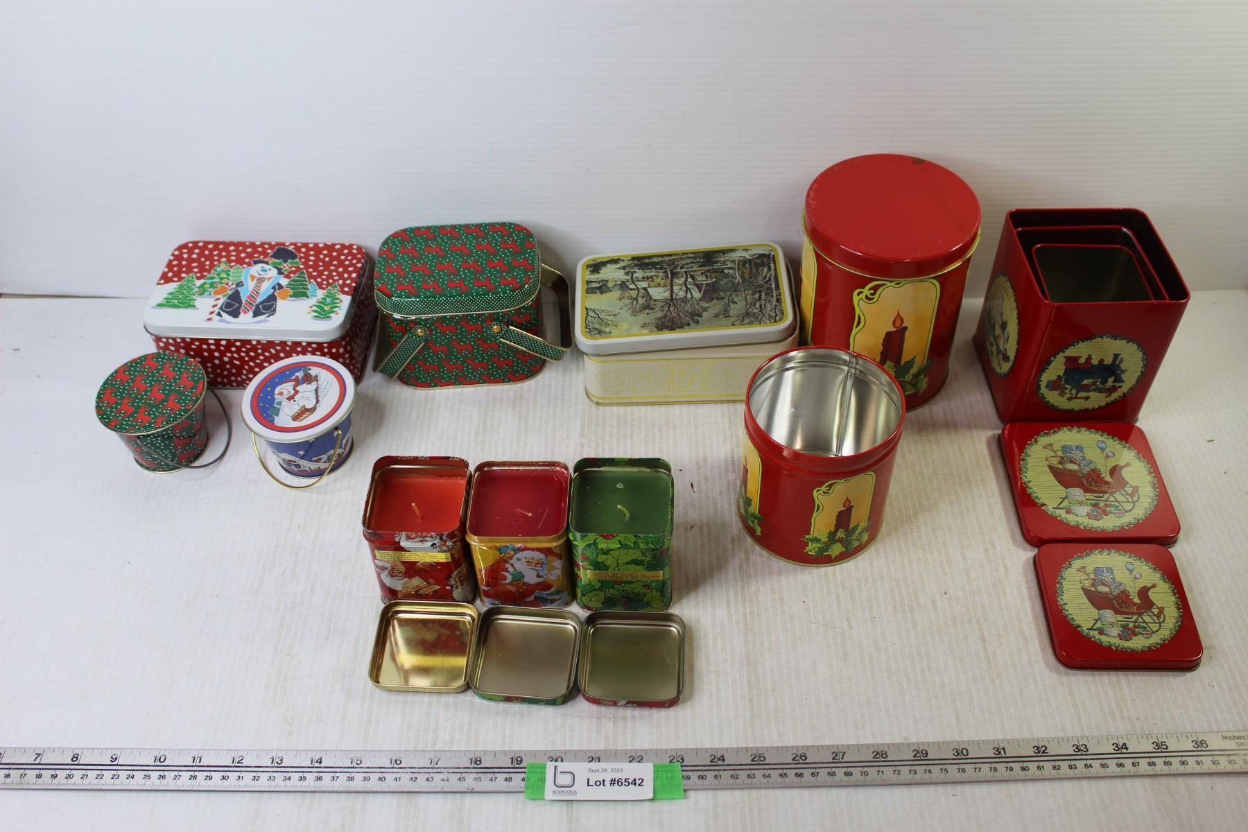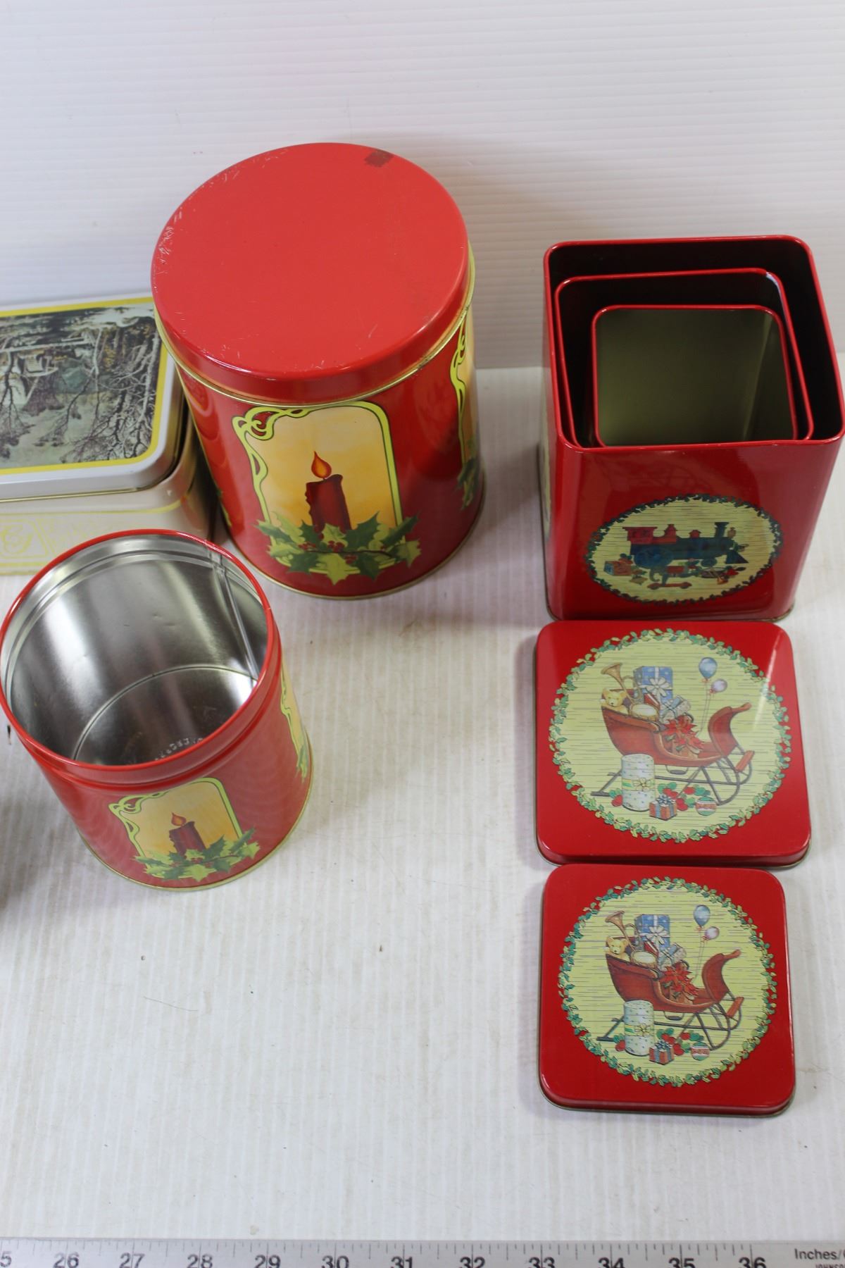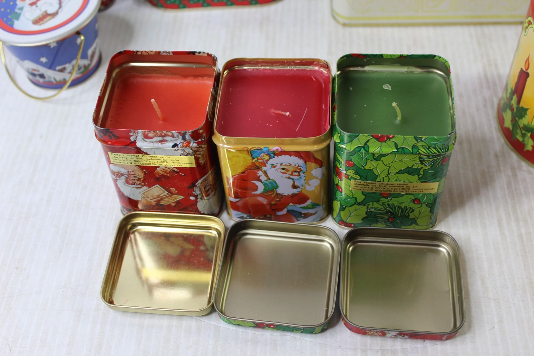 (3) Christmas Candles + (10) Tin Containers