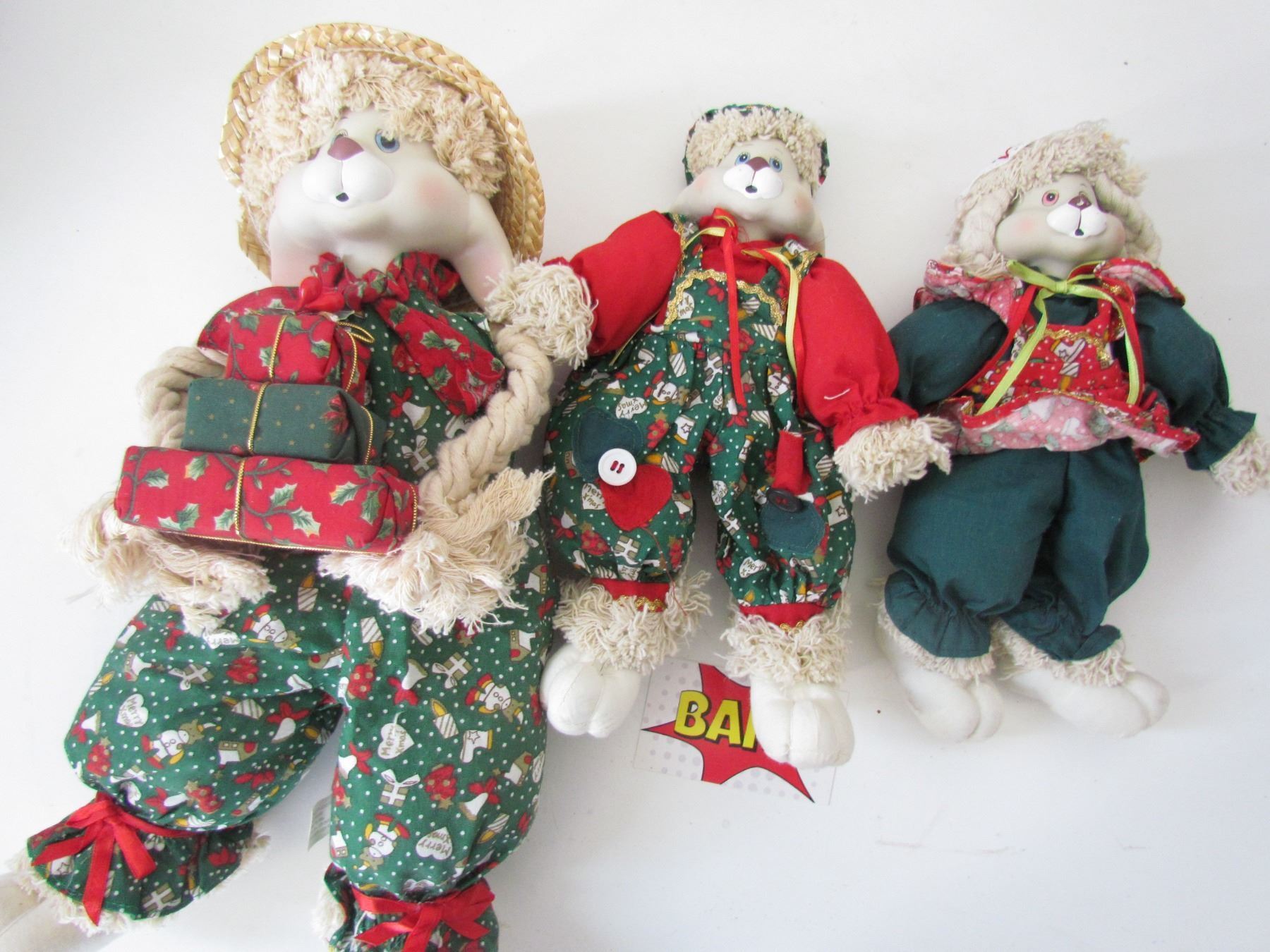 3 Christmas Rabbits Ceramic Faces