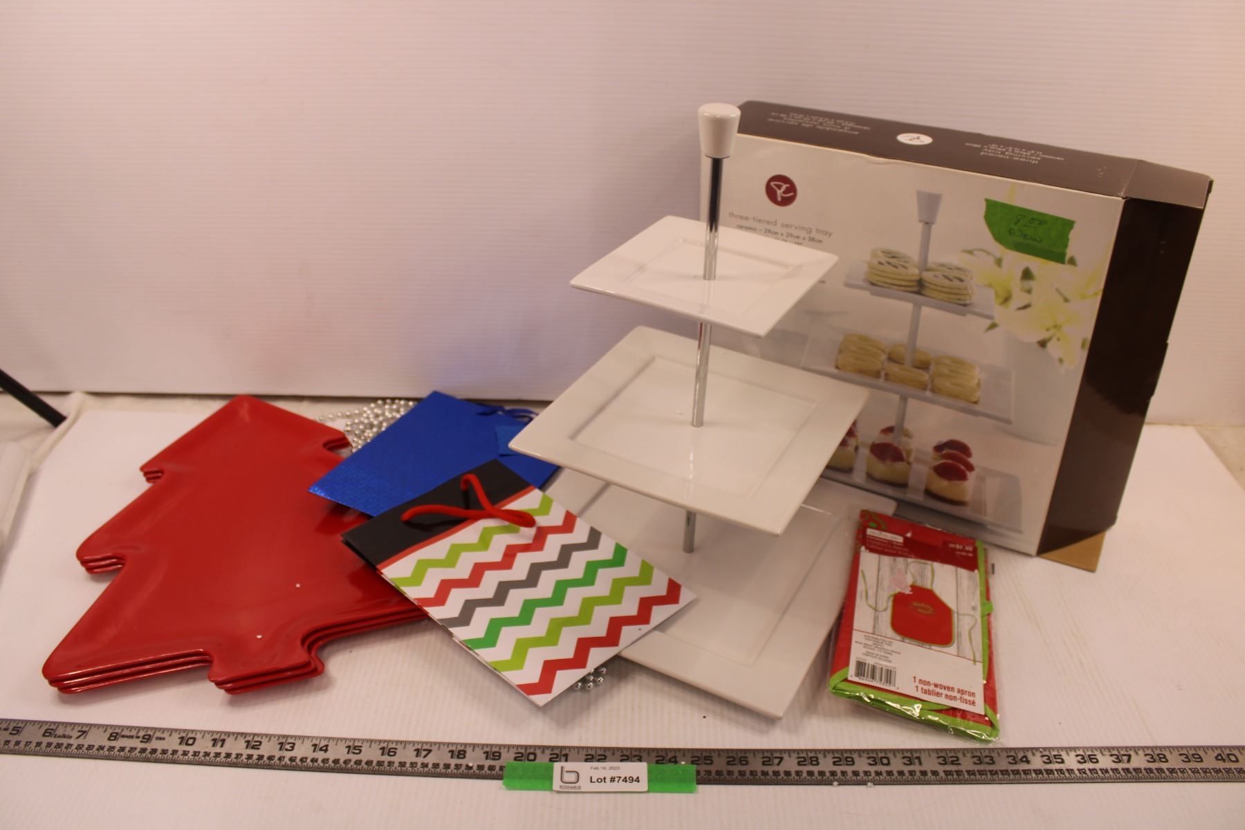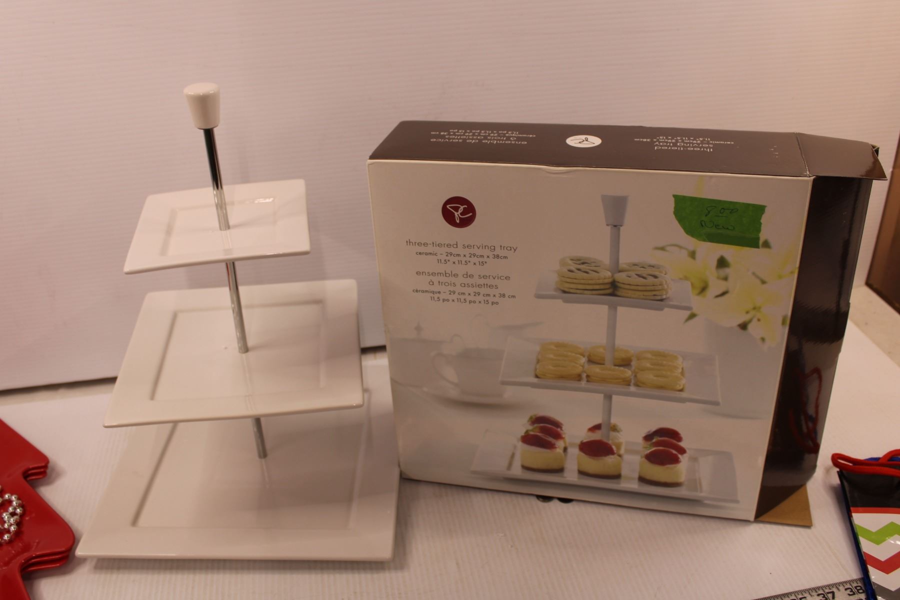 (3) Christmas Tree Serving Platters + Three-tiered Serving Tray and Miscellenious