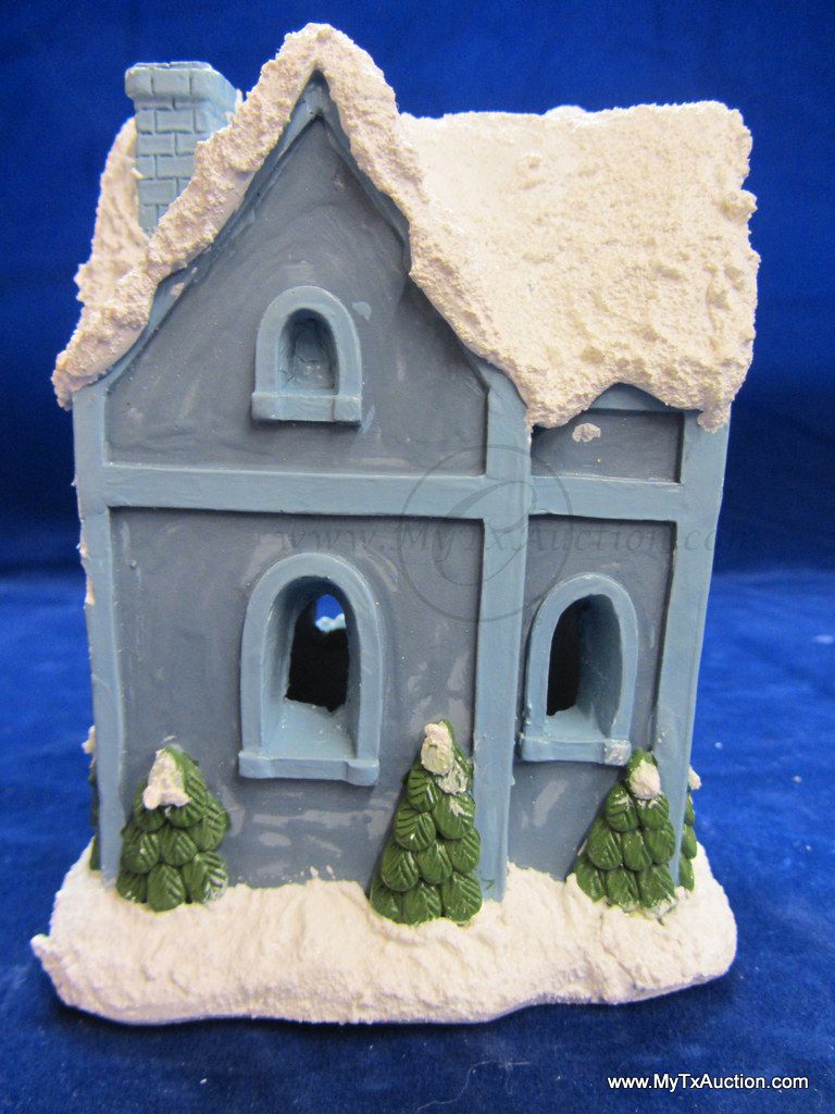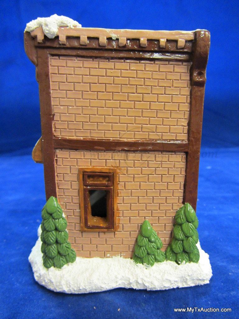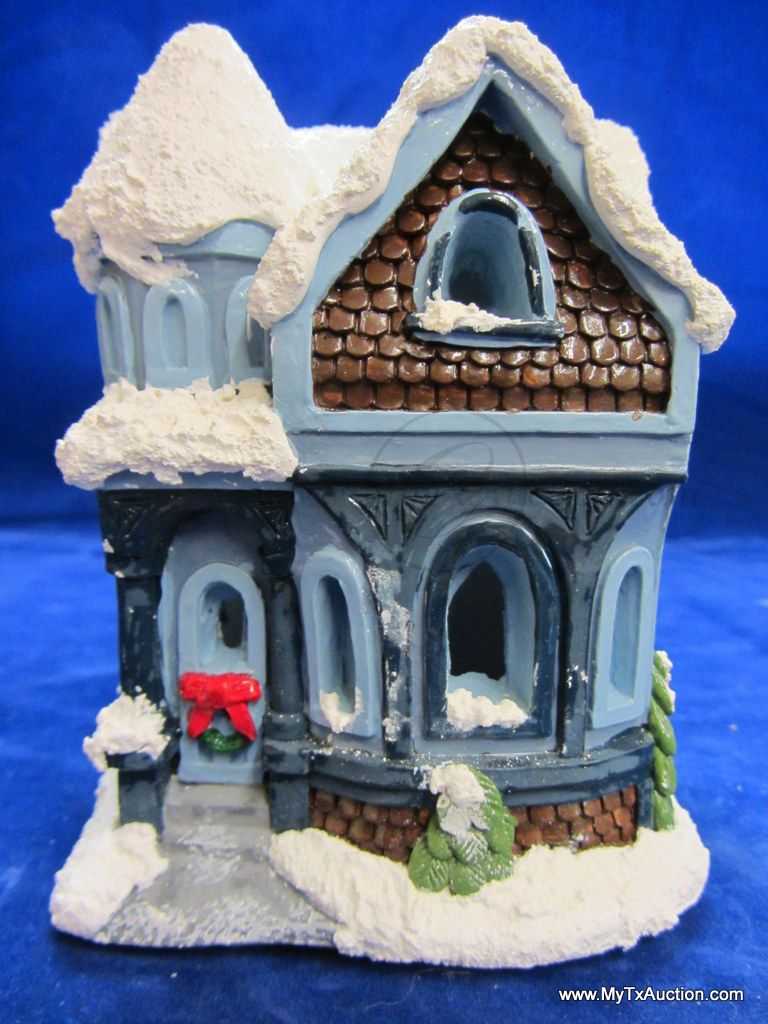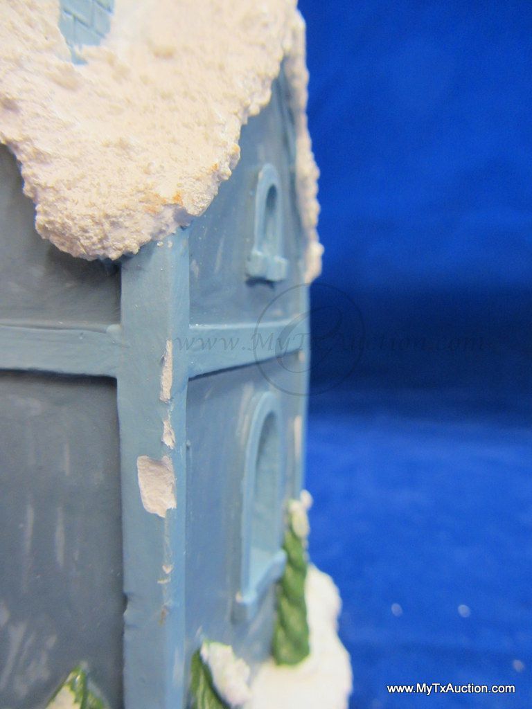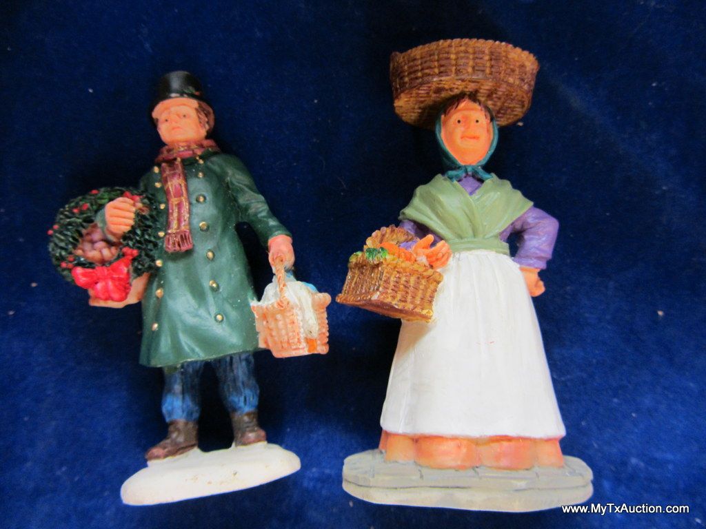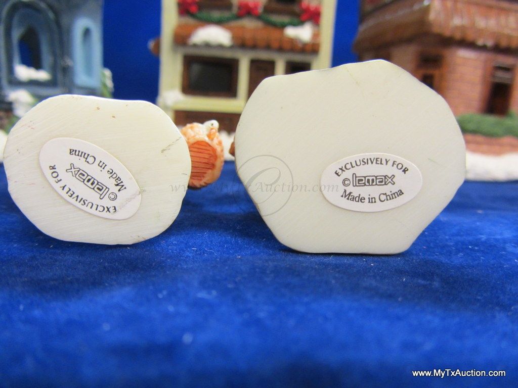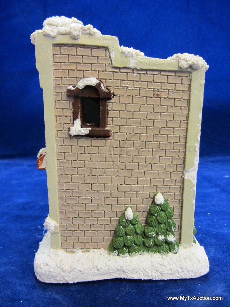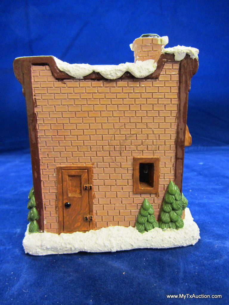 This 5 piece chalk village comes complete with 3 building an 2 Lemax Christmas village accessories figurines. Building include a 1.5 story Victorian, Bakery and a Happy Holidays corner market. The figurines include a women street vendor w/fresh veg. and Papa with baskets full of goodies and a wreath. In used very good condition NOTE: the Victorian has some minor damage (see images for details)