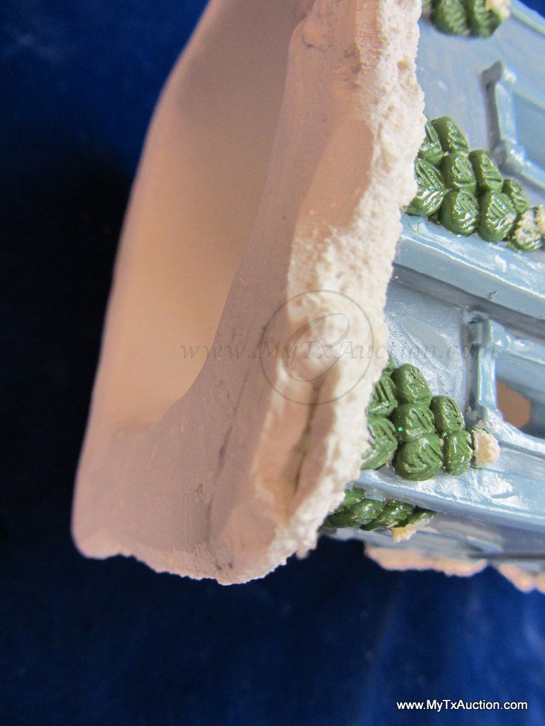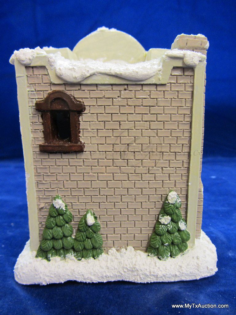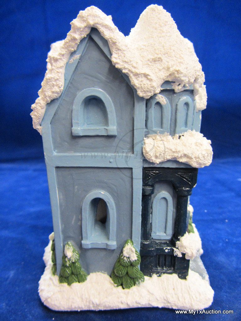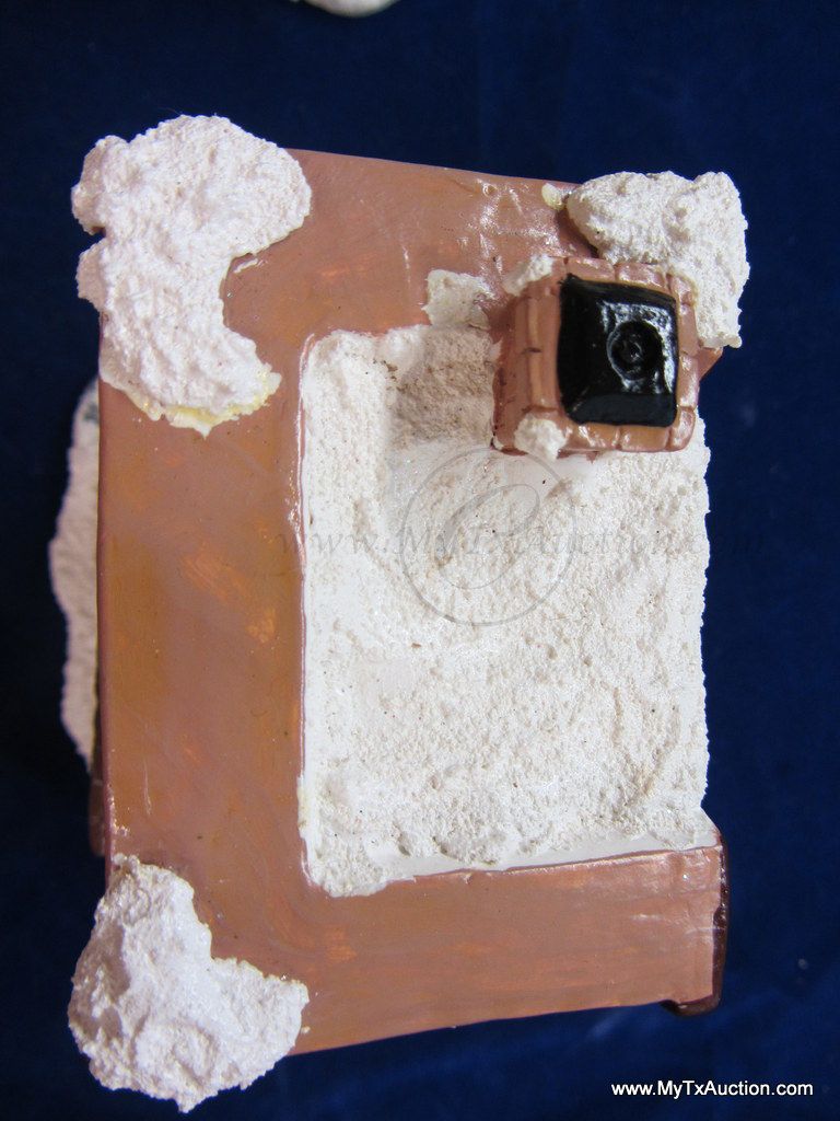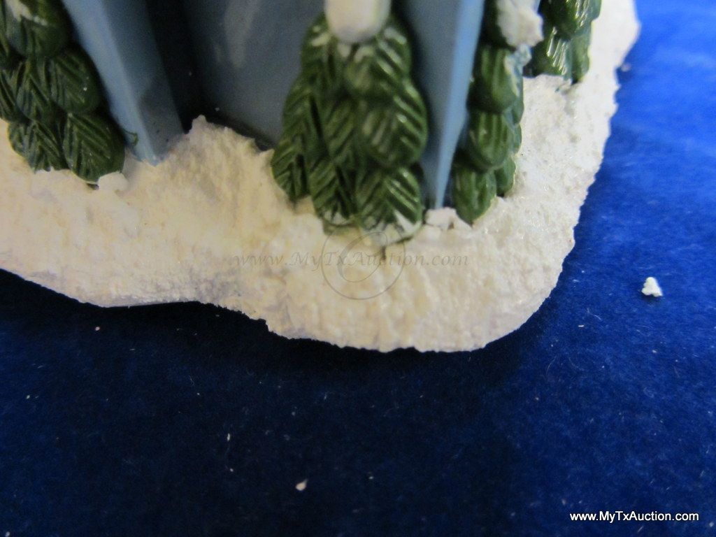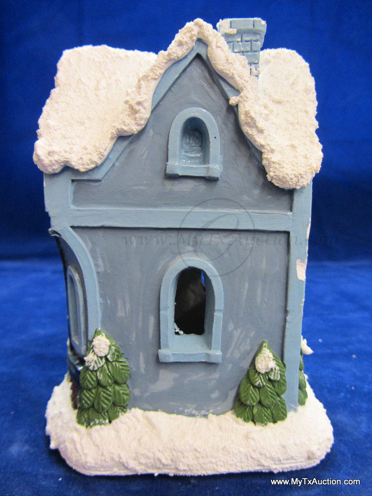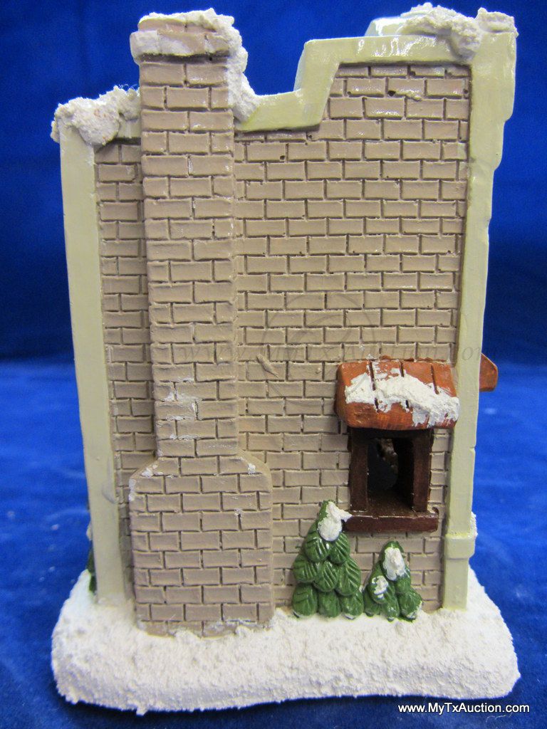 This 5 piece chalk village comes complete with 3 building an 2 Lemax Christmas village accessories figurines. Building include a 1.5 story Victorian, Bakery and a Happy Holidays corner market. The figurines include a women street vendor w/fresh veg. and Papa with baskets full of goodies and a wreath. In used very good condition NOTE: the Victorian has some minor damage (see images for details)