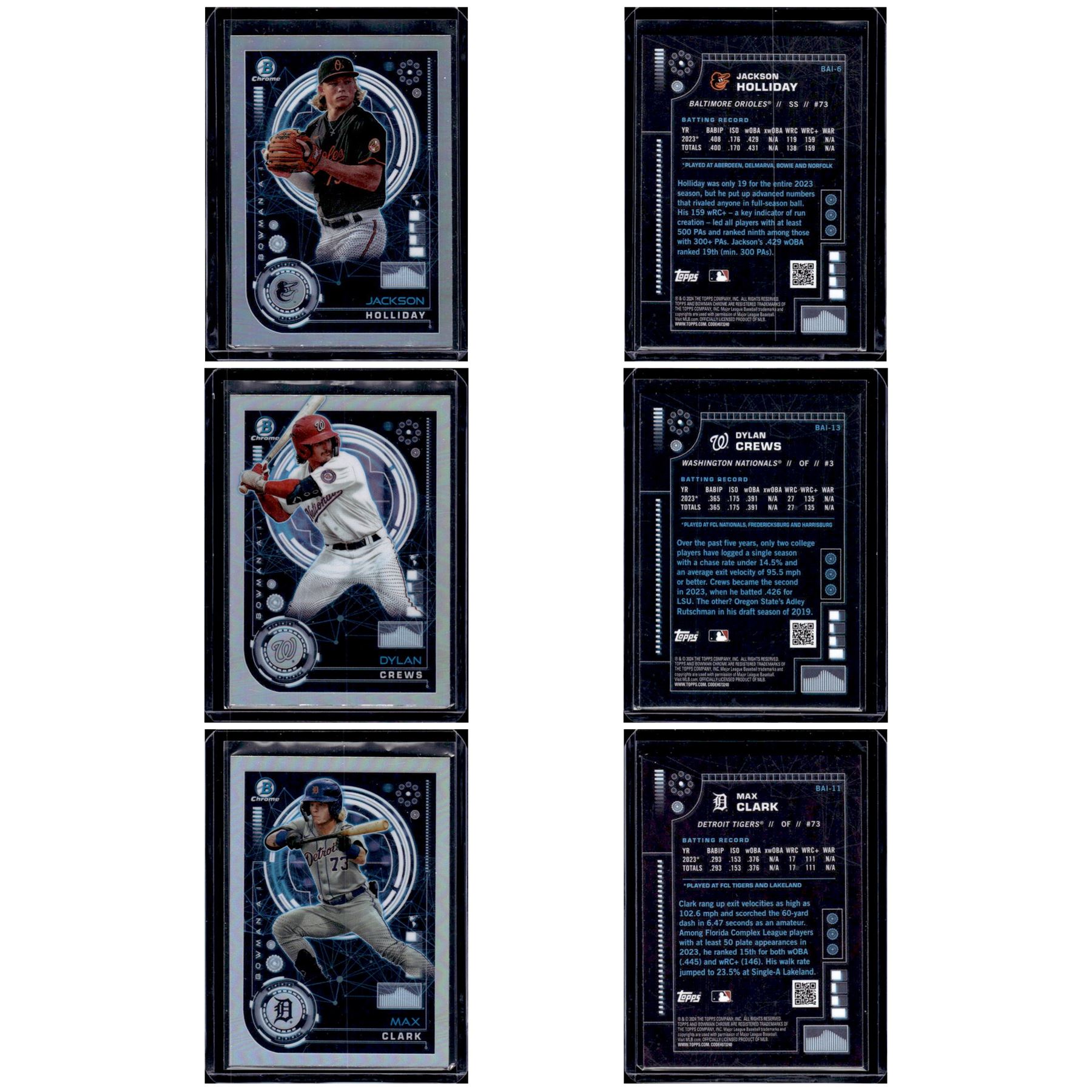 3 Chrome AI Refractor Prospects Holliday, Crews, Clark