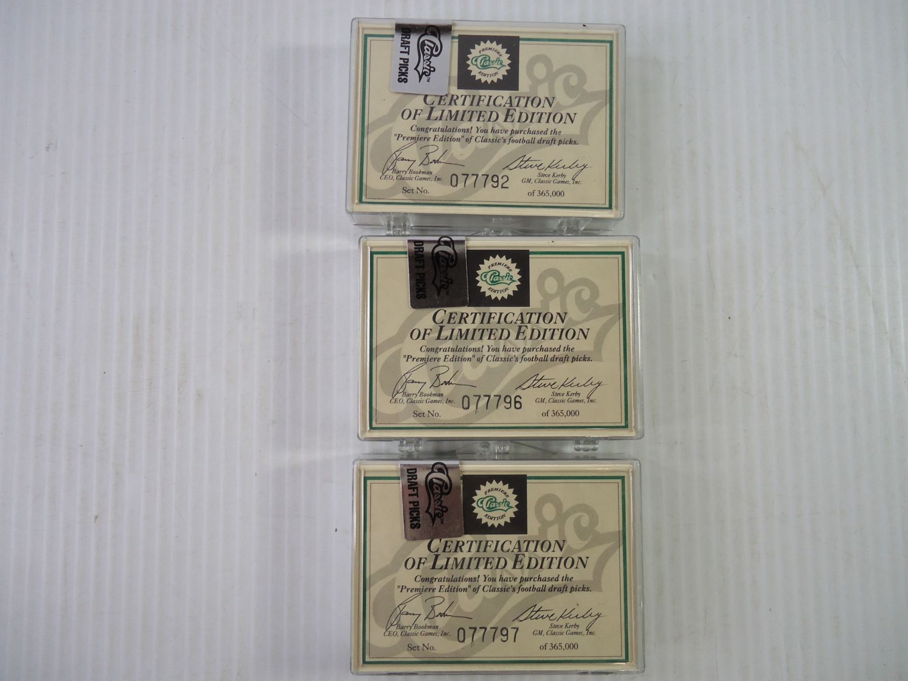 (3) Classic Draft Pick Cards in sealed plastic containers