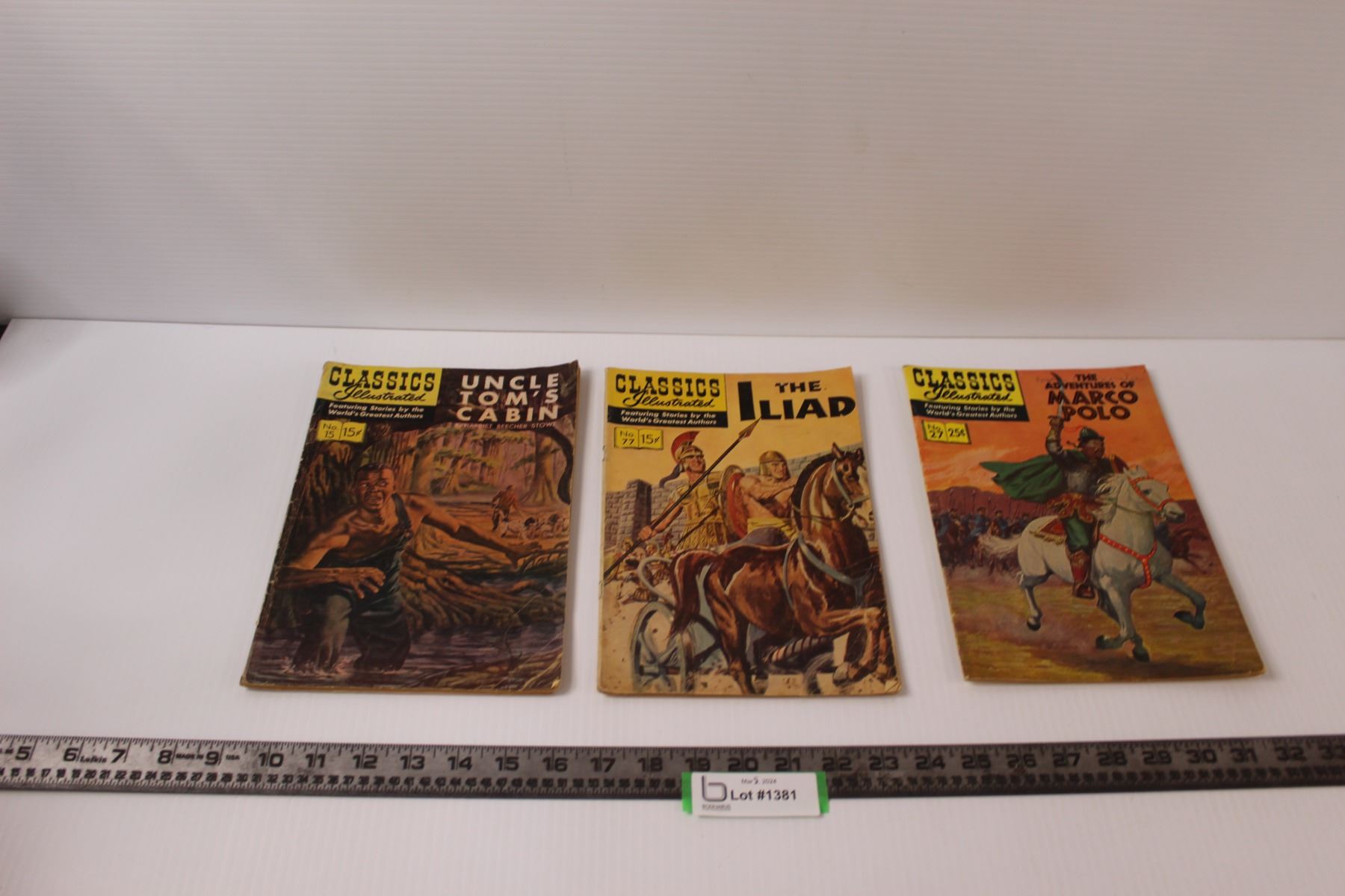 (3) Classics Illustrated Comic Books - Uncle Tom's Cabin, The Iliad & The Adventures of Marco Polo