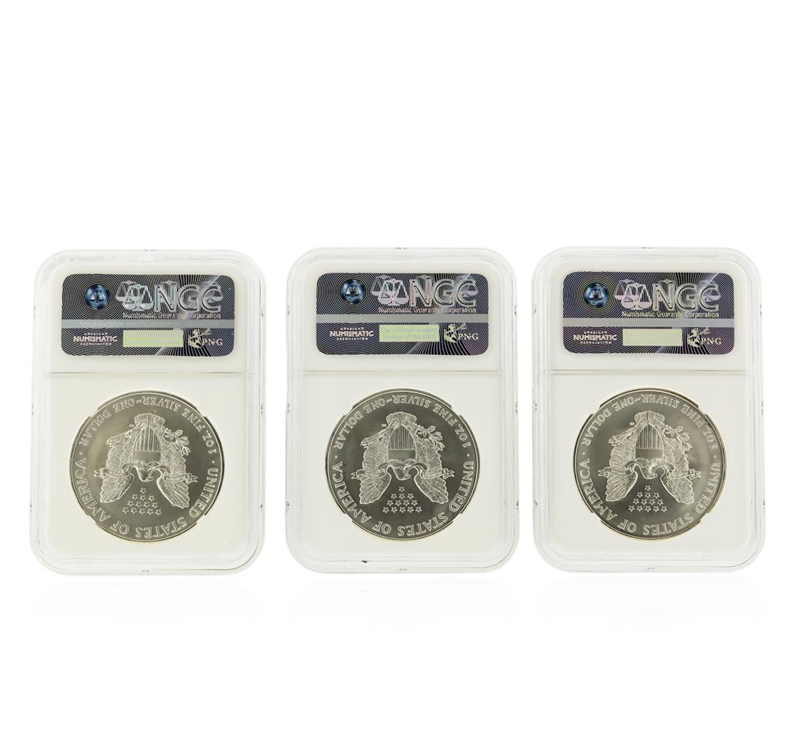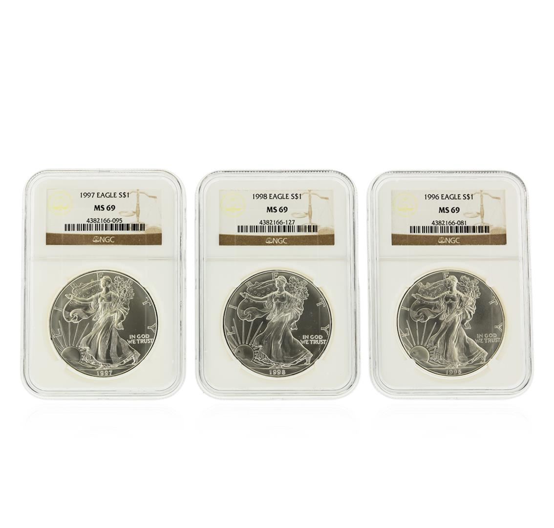 One 3 Coin Set 1996-1998 $1 American Silver Eagle Coins NGC MS69. NGC Certified.