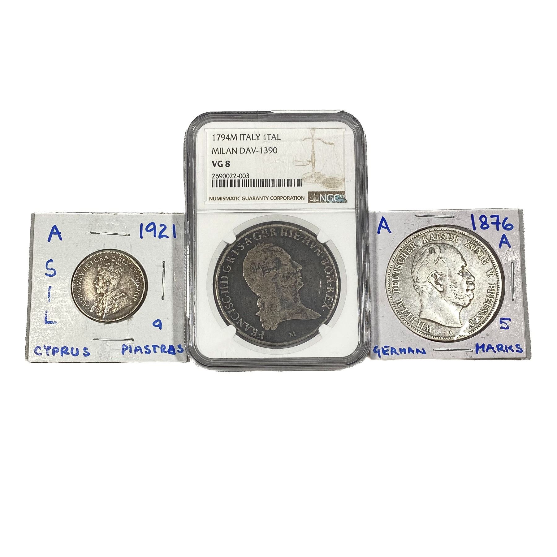 [3 Coins] 1794-1921 Italy/Germany/Cyprus Coin Lot
