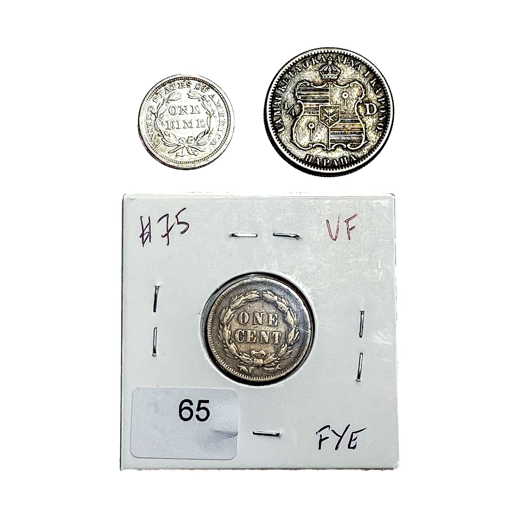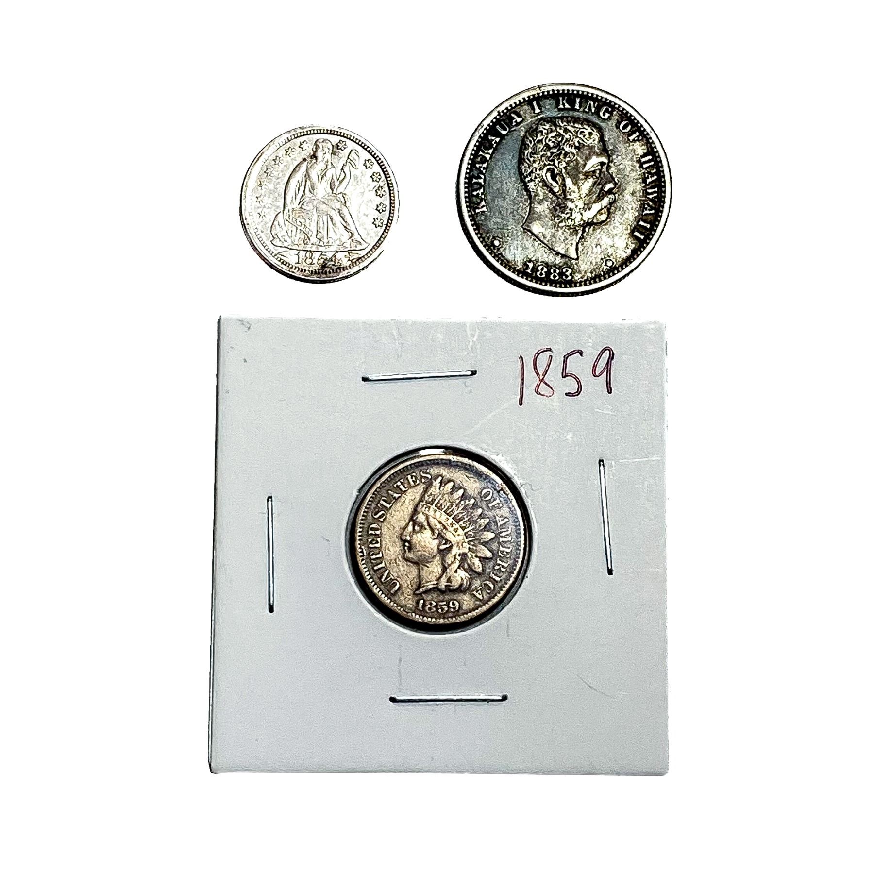 [3 Coins] 1854-1883 U.S. Cent/DIme&Hawaiian 25C