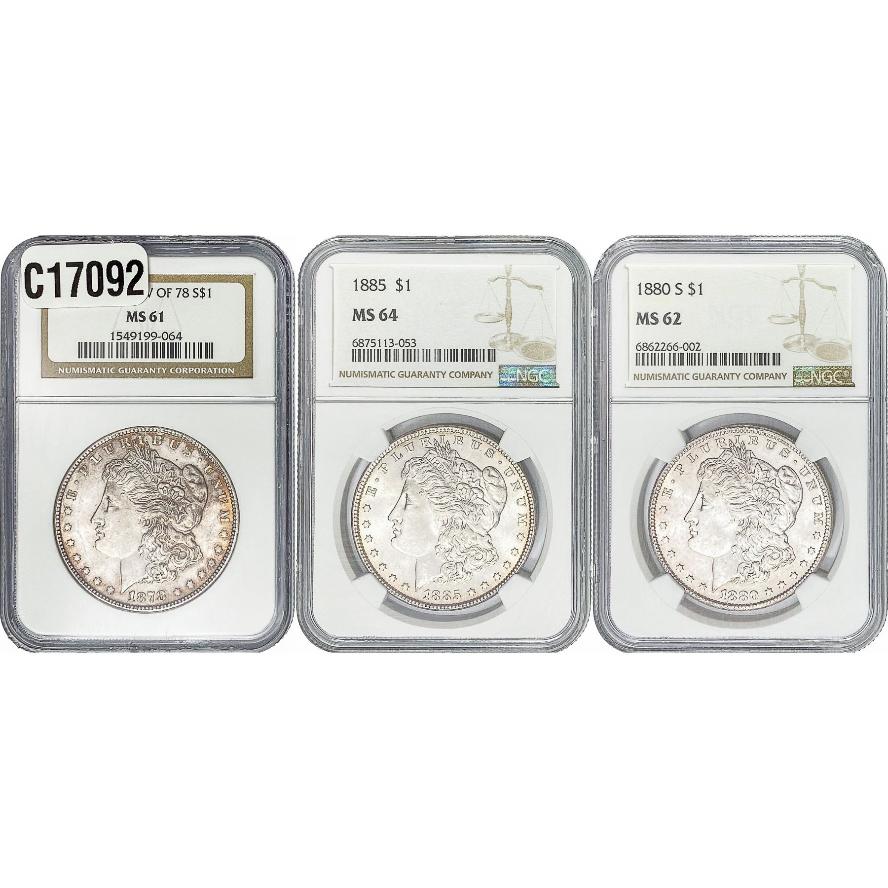 [3 Coins] 1878-1885 Morgan Silver Dollar NGC MS61-64