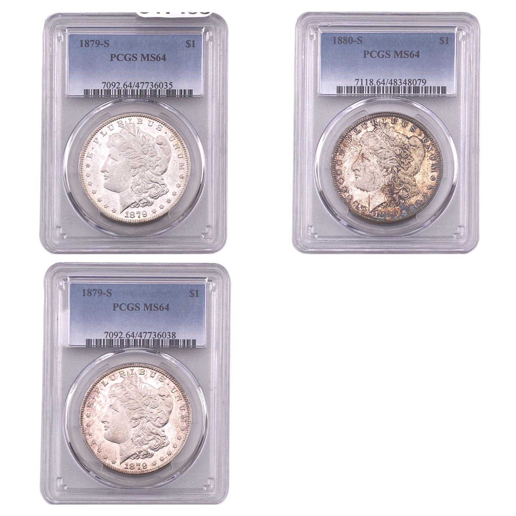[3 Coins] 1879-1880 Morgan Silver Dollar PCGS MS64