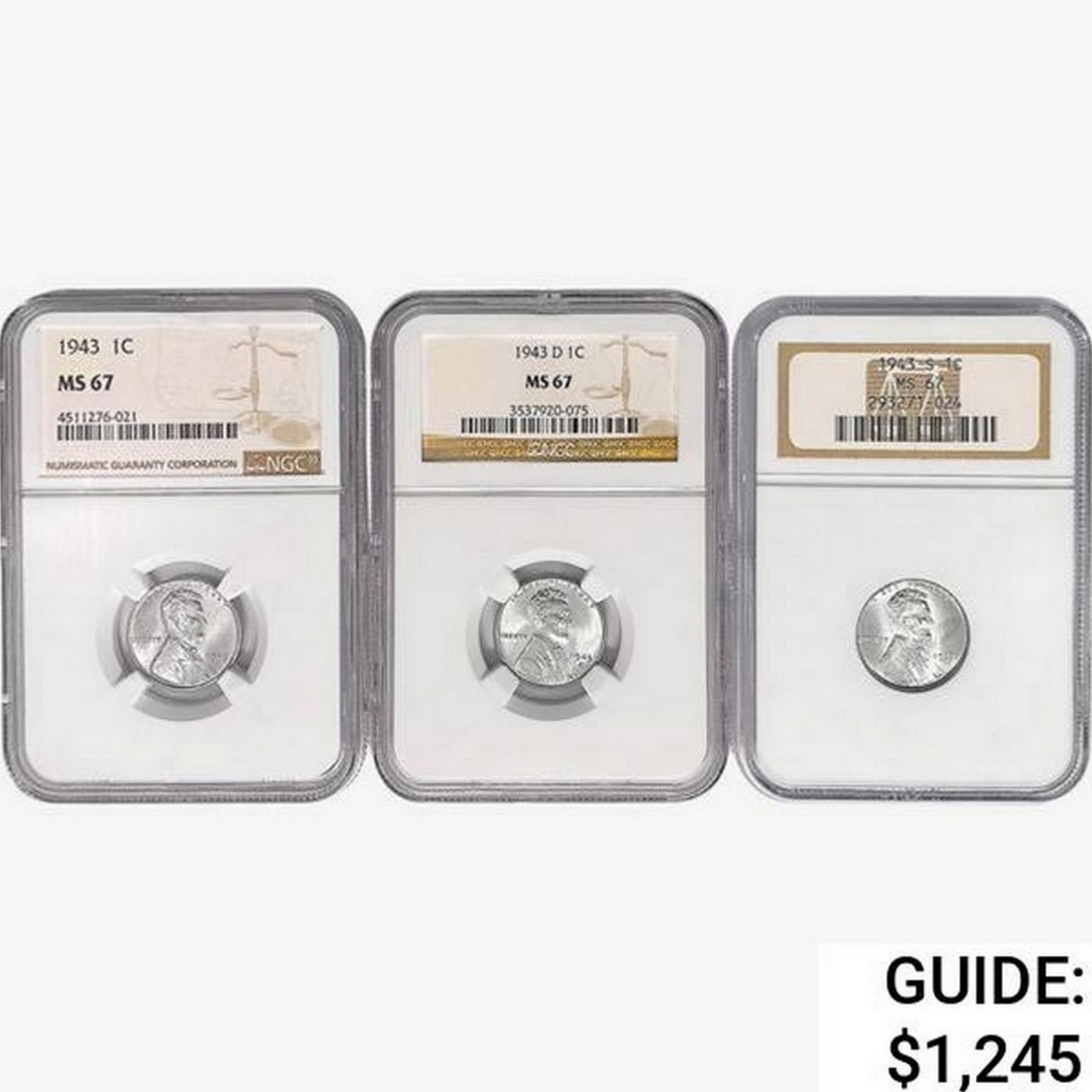 [3 Coins] 1943 Wheat Cent NGC MS67
