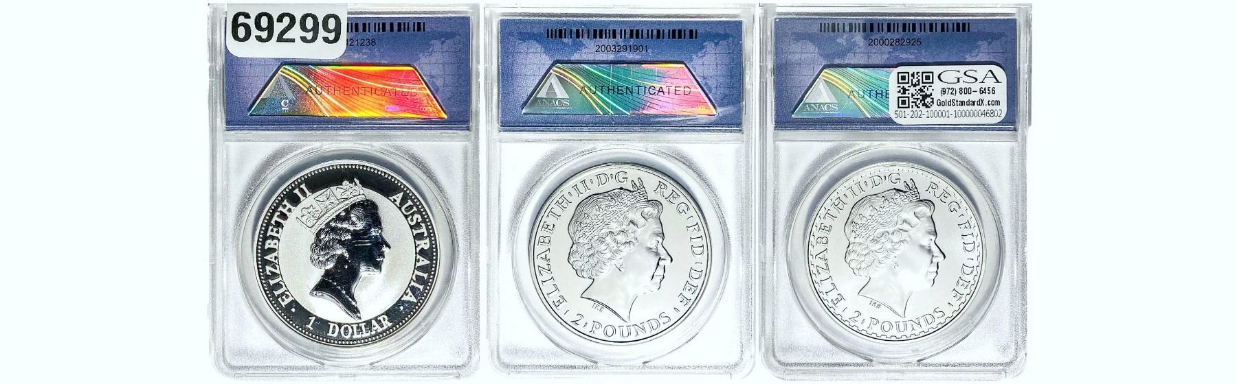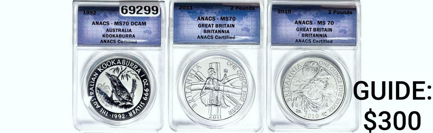 [3 Coins]1992-2011 Austailia&Great Britian 1 OZ SIlver ANACS MS70