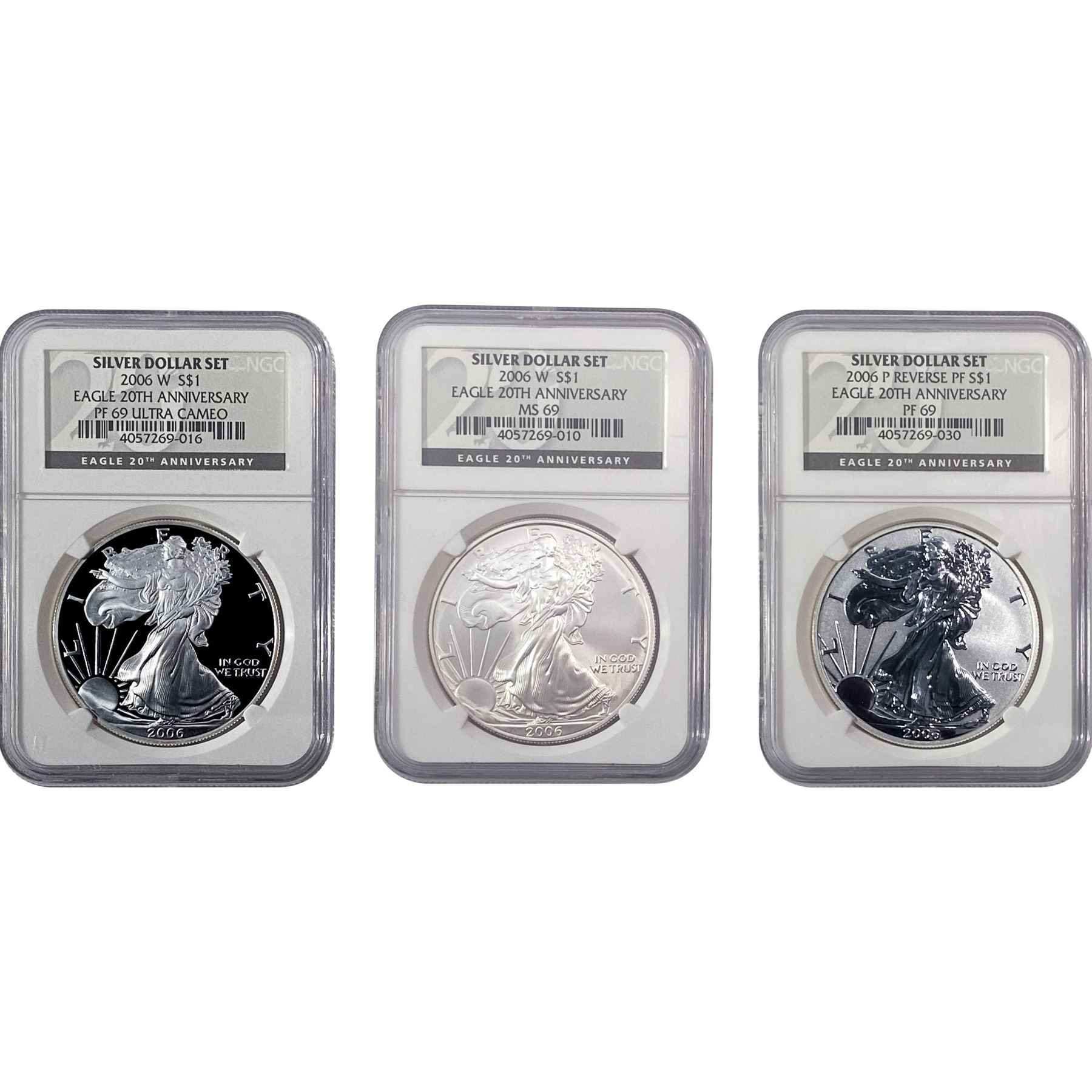 [3 Coins]2006 Silver Eagle NGC MS/PF69 20th Anniv.