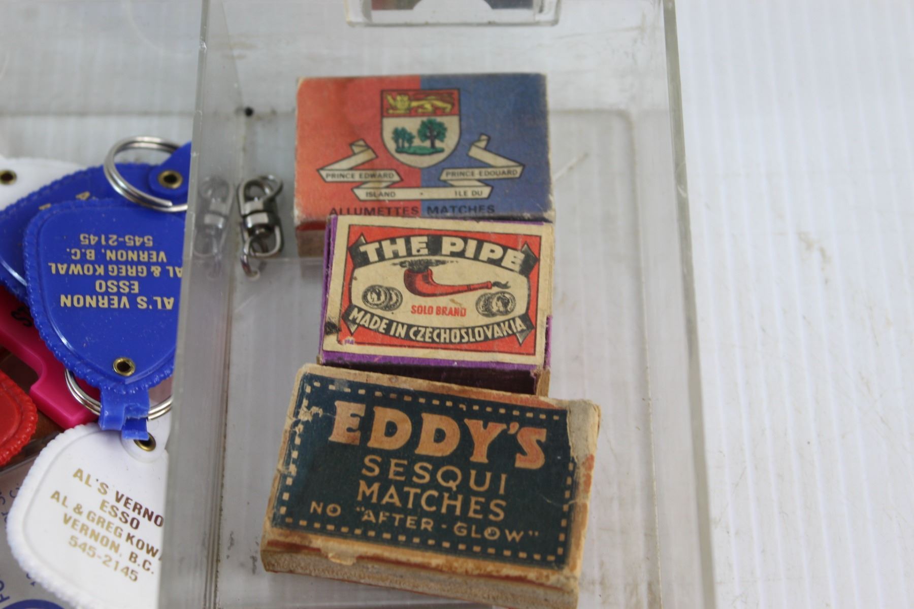 (3) Collectible Vintage Match Boxes and Assorted Key Chains