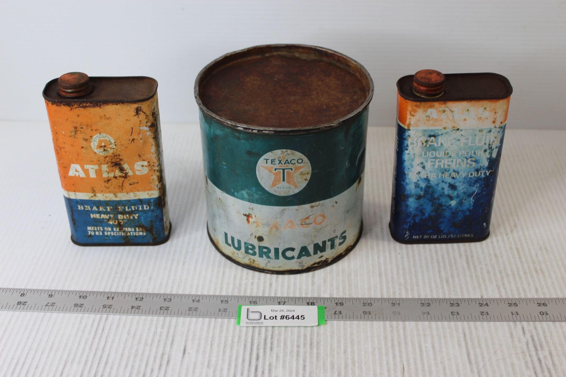 (3) Collector Tins - Two Atlas, One Texaco Lubricant (Partially Full)
