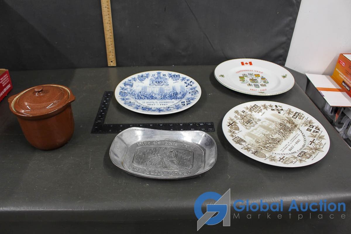 (3) Collectors Plates, Metal Dish and Ceramic Pot