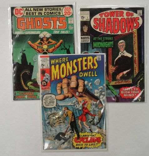 3 Comics: Where Monsters Dwell #1 Jan 70, Tower of Shadows #1 Sept 69 & Ghosts#7