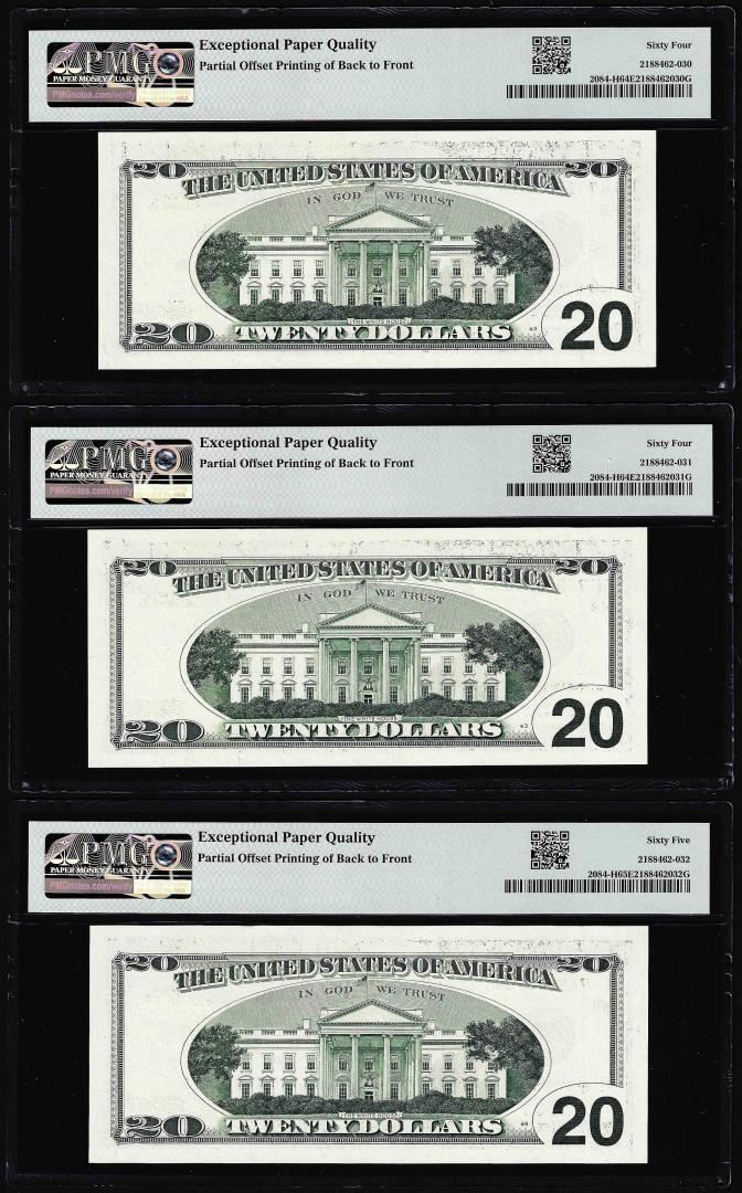 (3) Consec. 1996 $20 Federal Reserve Offset Error Notes PMG Ch. Uncirculated 64/65EPQ