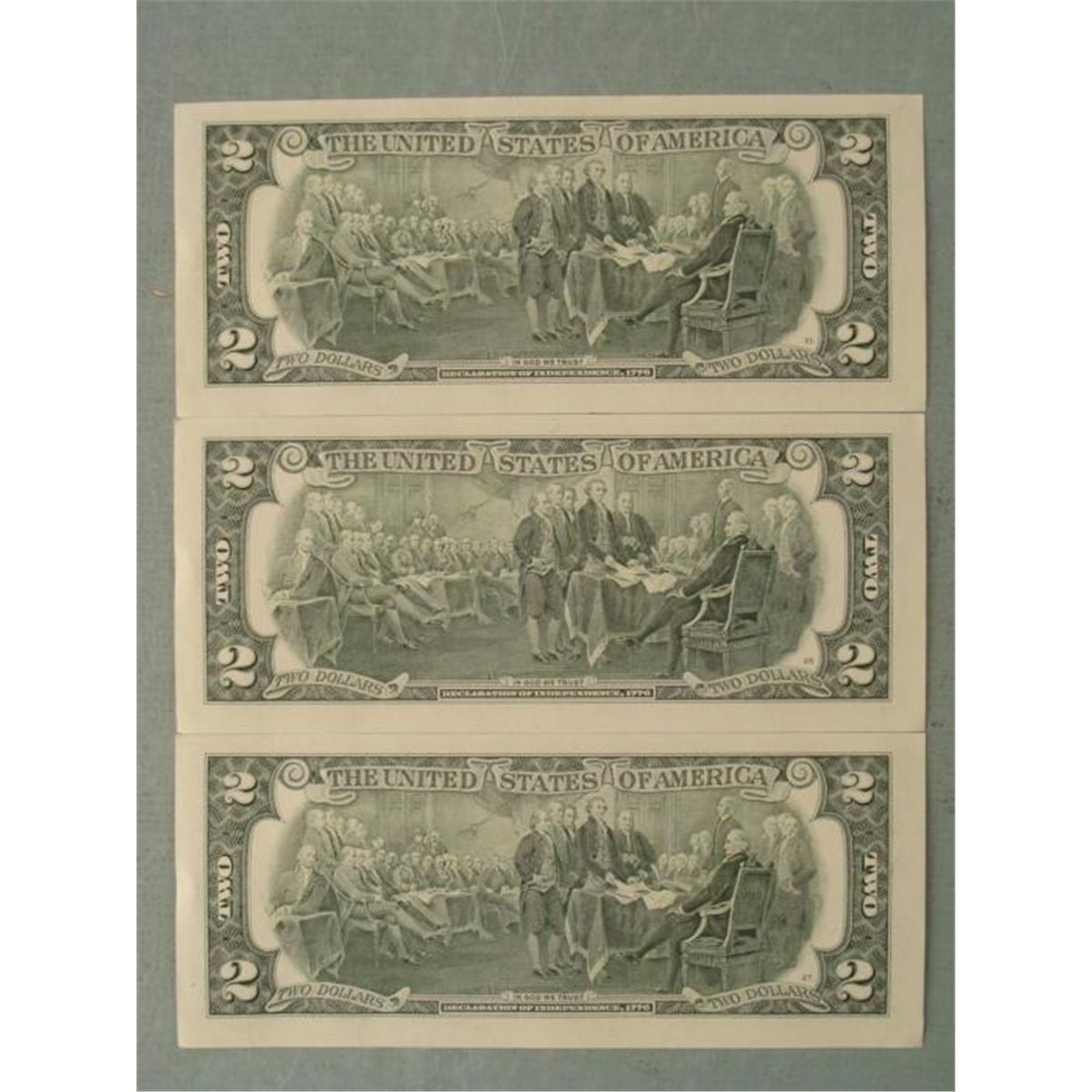 (3) 2003-A $2 Notes, all with consecutive serial numbers * Mint mark: G (Chicago) Grade: Crisp Uncirculated * The bills you receive may be different from those shown.