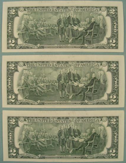 (3) 2003-A $2 bills * * Serial numbers: Consecutive (exact serial number might be different from that shown) * Mint mark: F (Atlanta) * Grade: Crisp Uncirculated