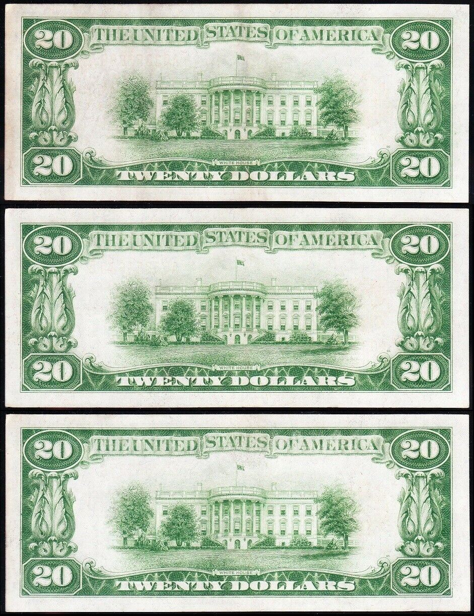 One 3 Consecutive 1928 $20 Gold Certificate Notes.