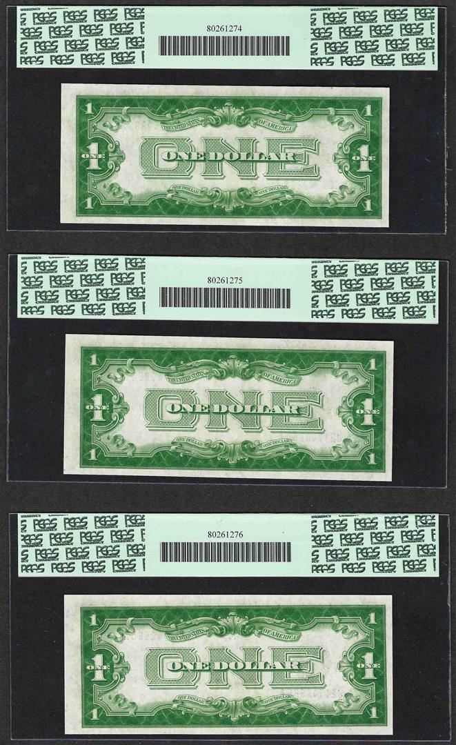 (3) Consecutive 1928A $1 Funnyback Silver Certificate Notes PCGS Very Choice New