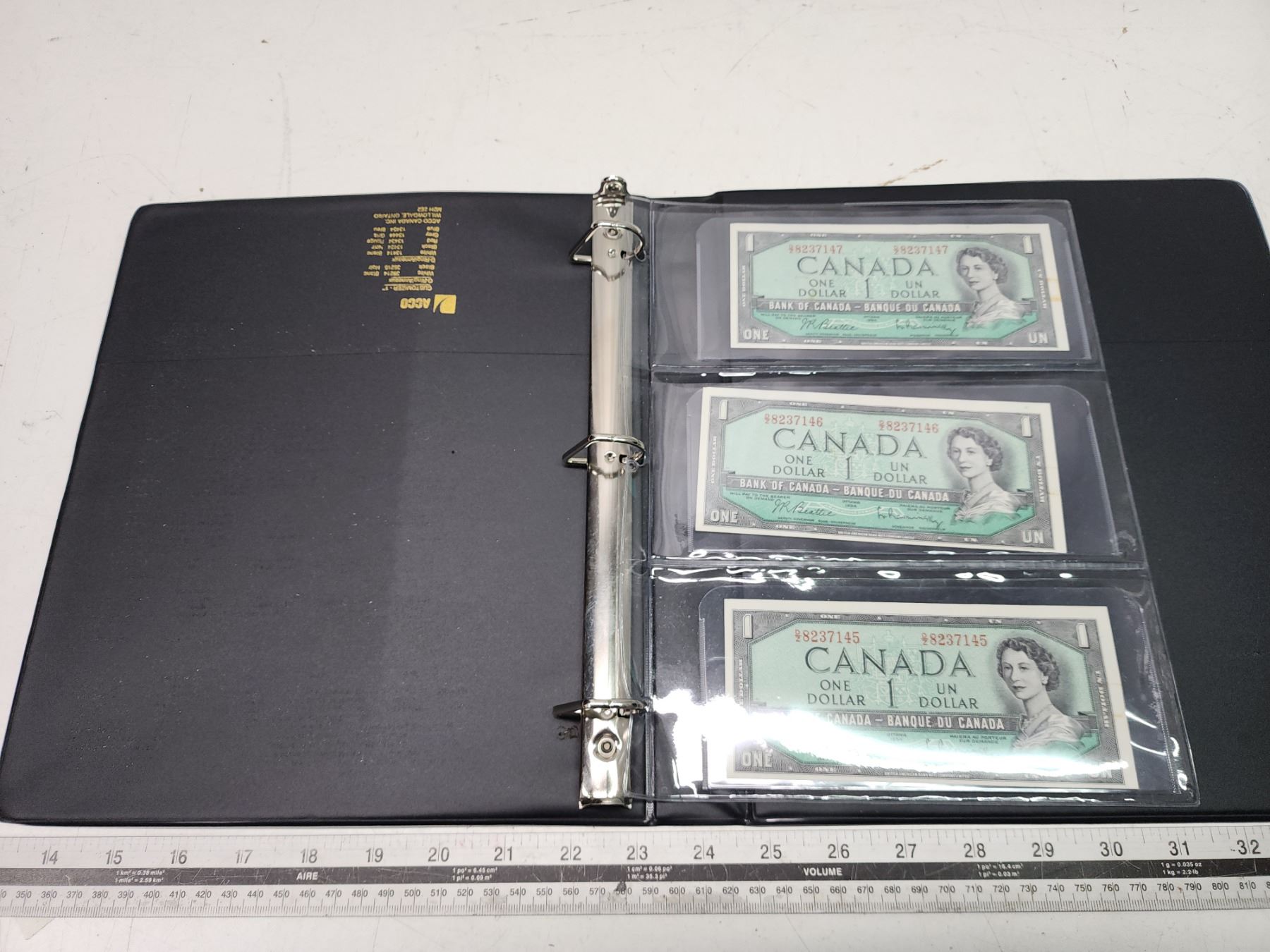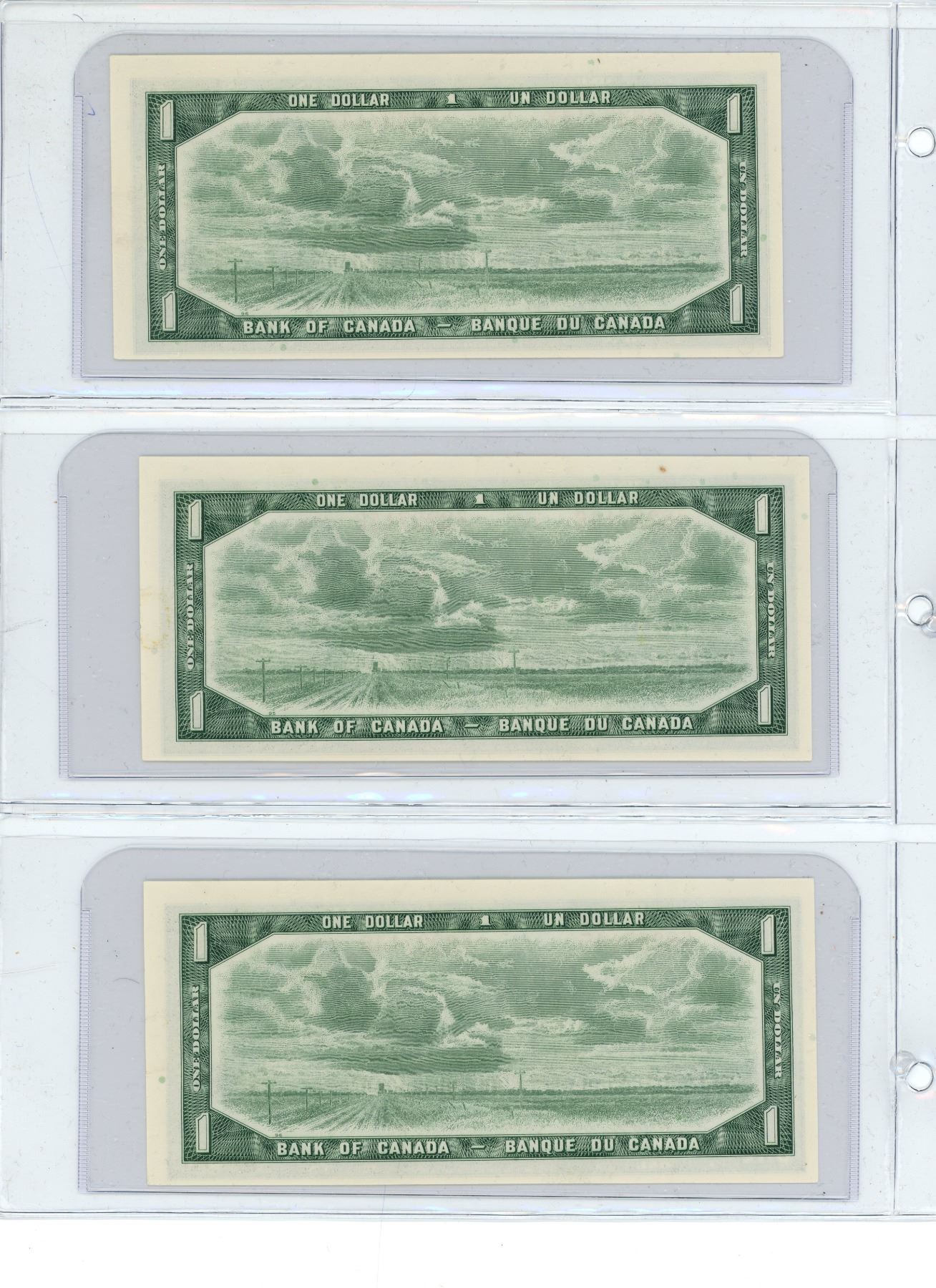 3 Consecutive 1954 Canadian 1 dollar bills - Beattie/Rasminsky - D/Z 8237145-47