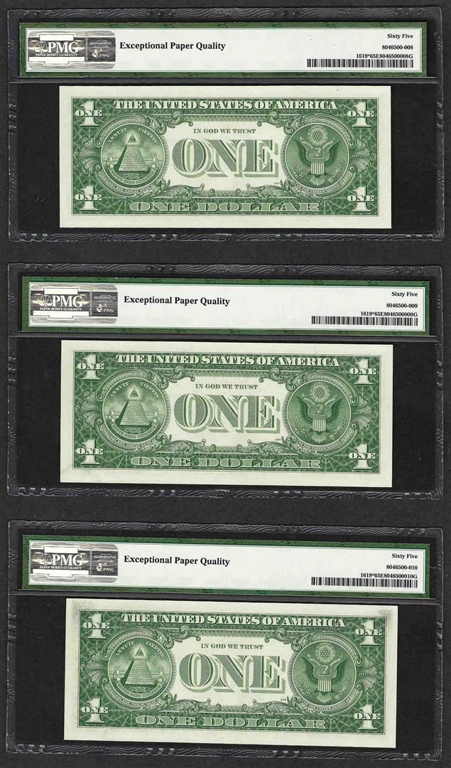 (3) Consecutive 1957 $1 Silver Certificate STAR Notes PMG Gem Uncirculated 65EPQ