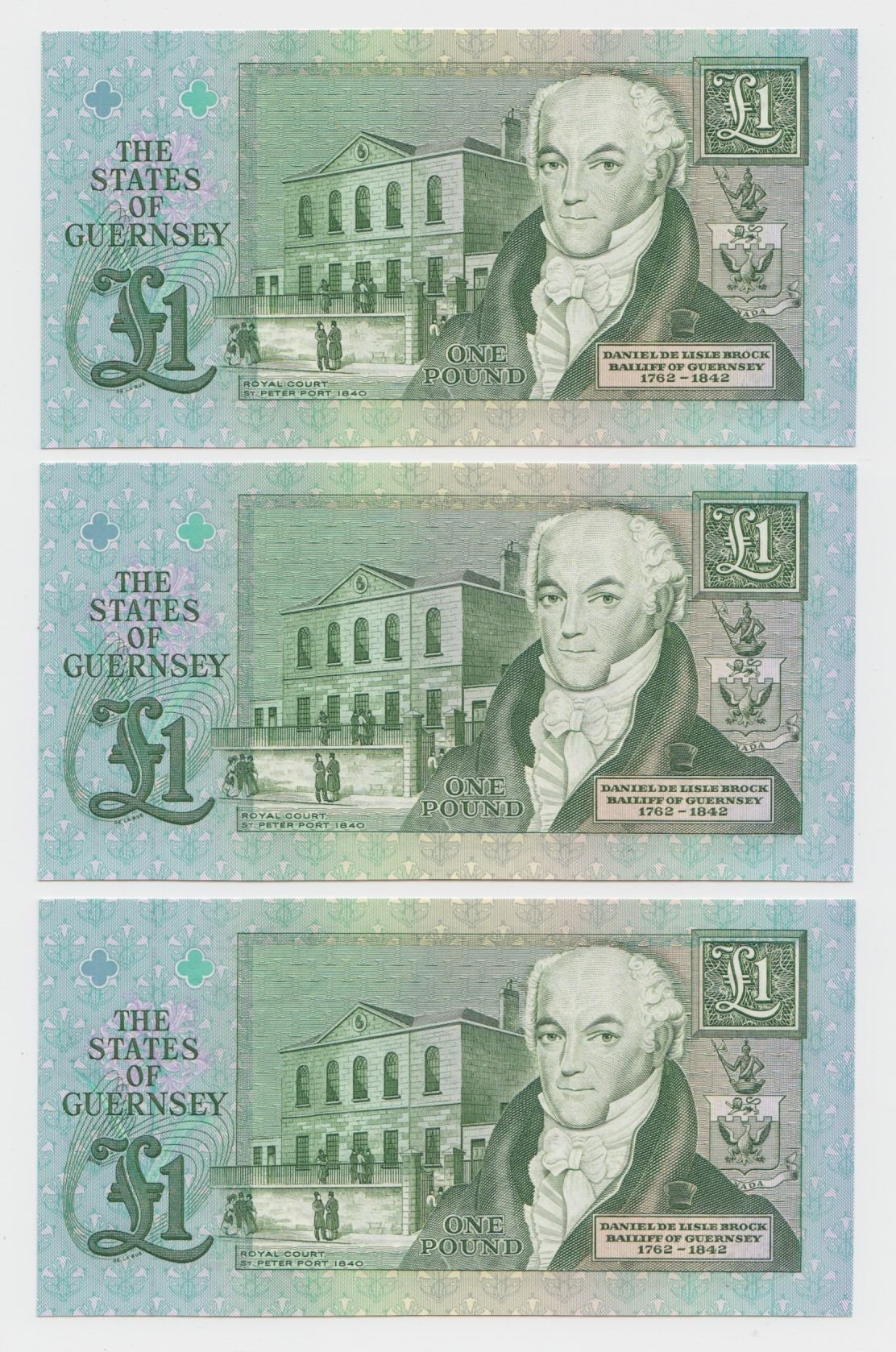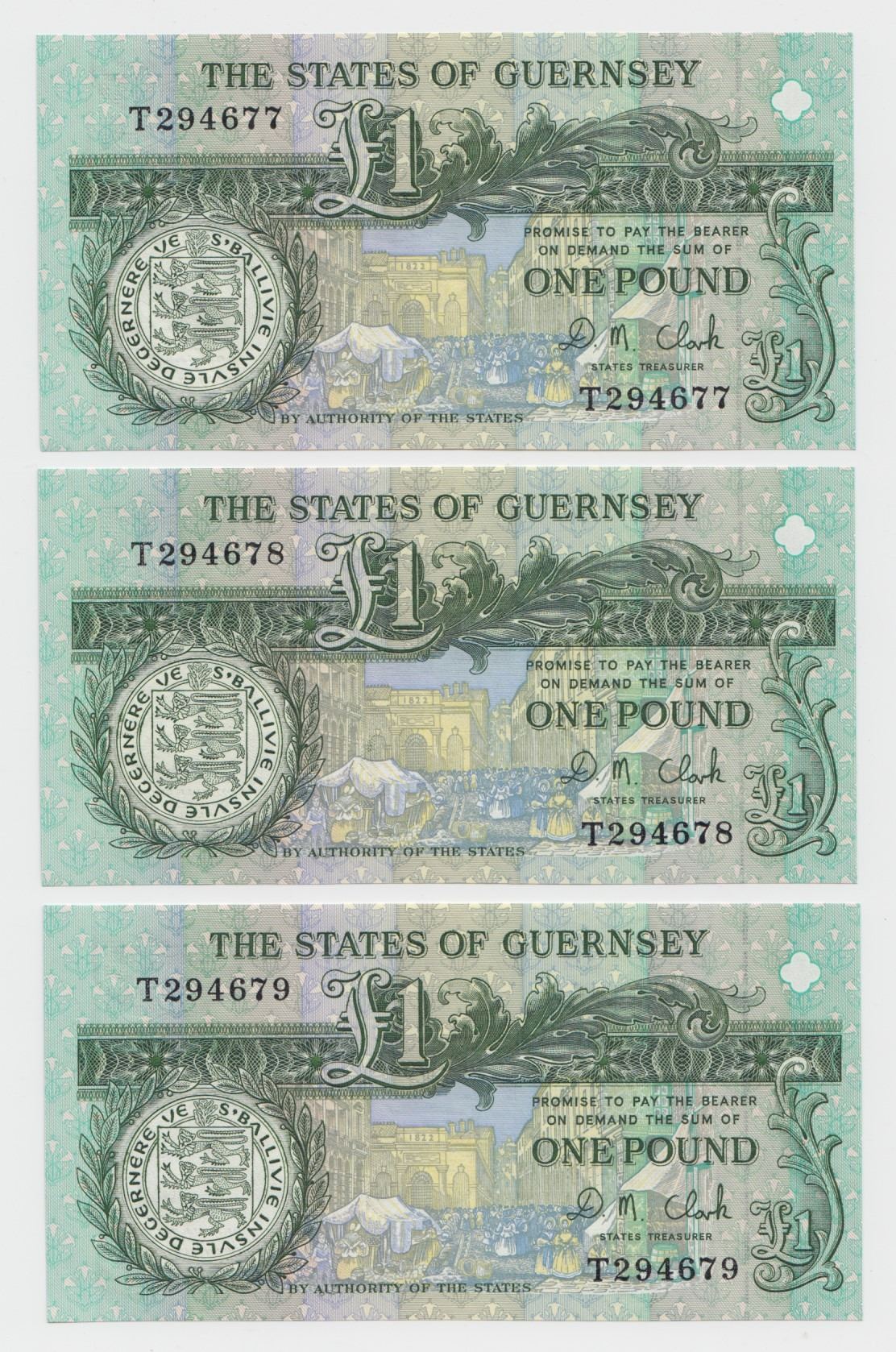 3 Consecutive 1991 Guernsey 1 Pound Notes