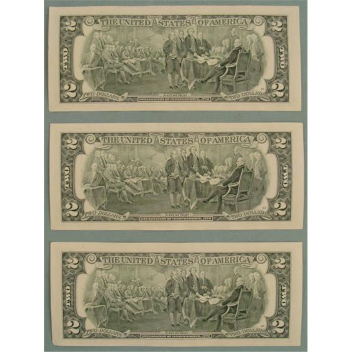 (3) 2003-A $2 bills, with consecutive serial numbers * * Mint mark: G (Chicago) * Grade: Crisp Uncirculated * Note: Bills shown may be different from those you receive