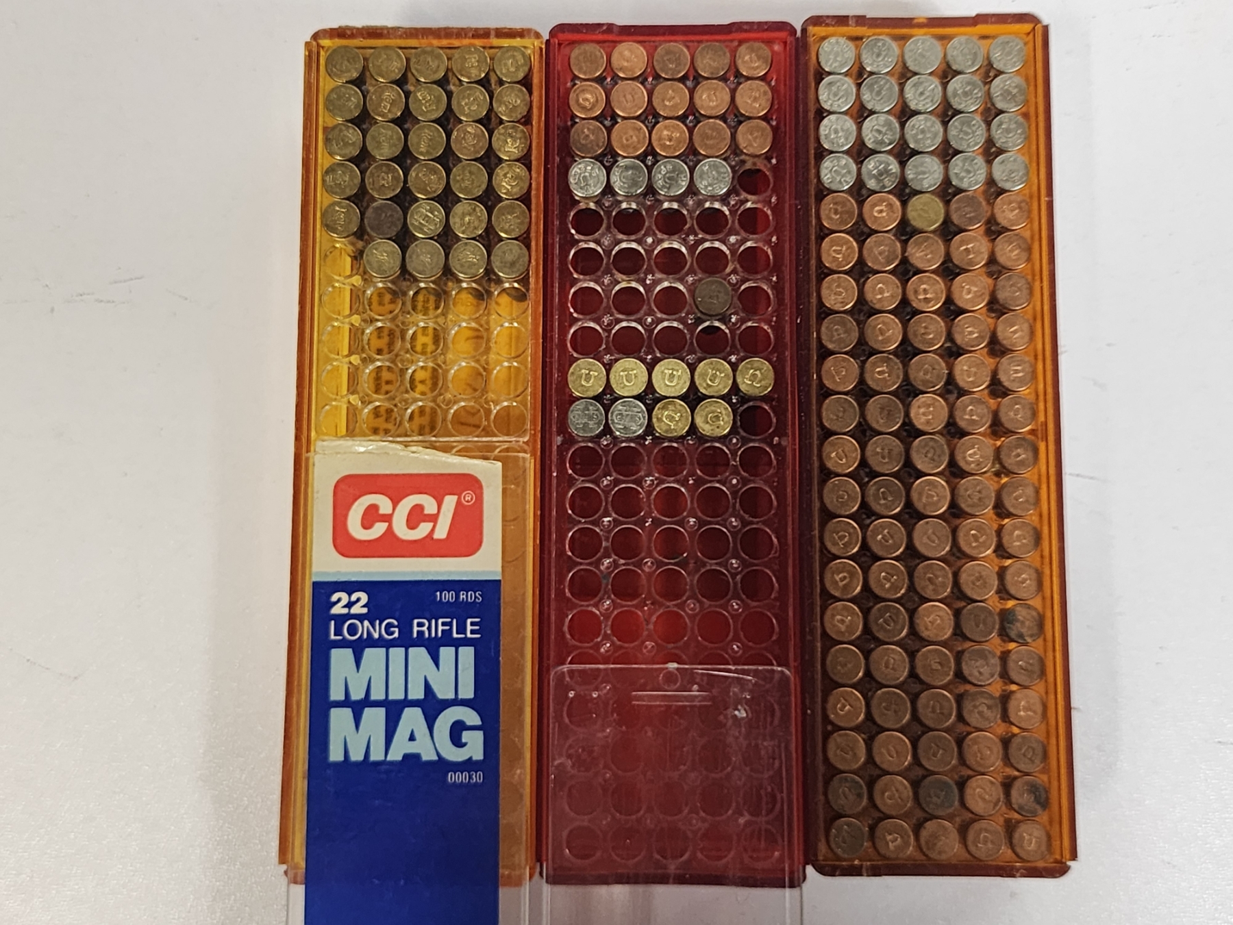 3 Containers of CCI Mini-Mag .22 Long Rifle Ammo - One Full, 2 Partially Full