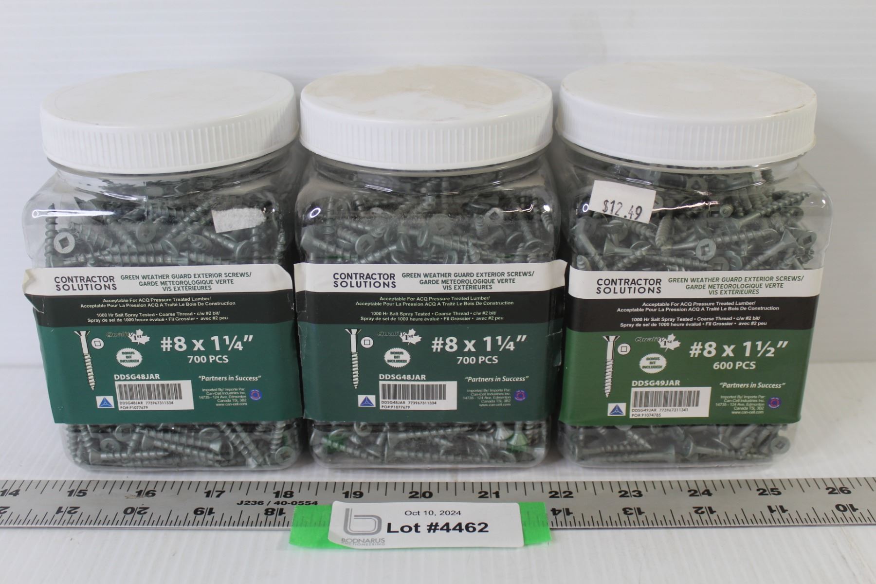 (3) Containers of Green Weather Guard Exterior Screws (#8 1 1/4'') - (#8 1 1/2'')