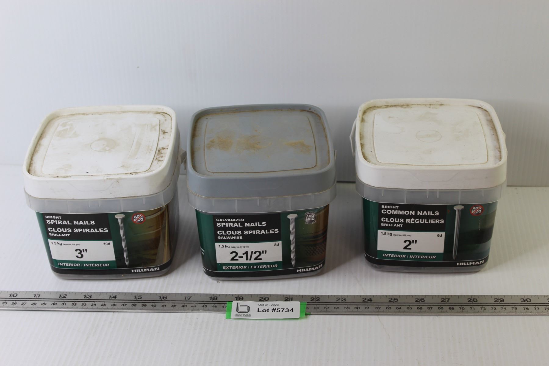 (3) Containers of Nails - (boxes are half full - 2" - 2 1/2" - 3")