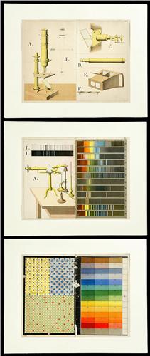 3 Copper Engravings "Microscopes", c. 1870 Size: 15 x 111/2 in., with passepartouts.<Br>