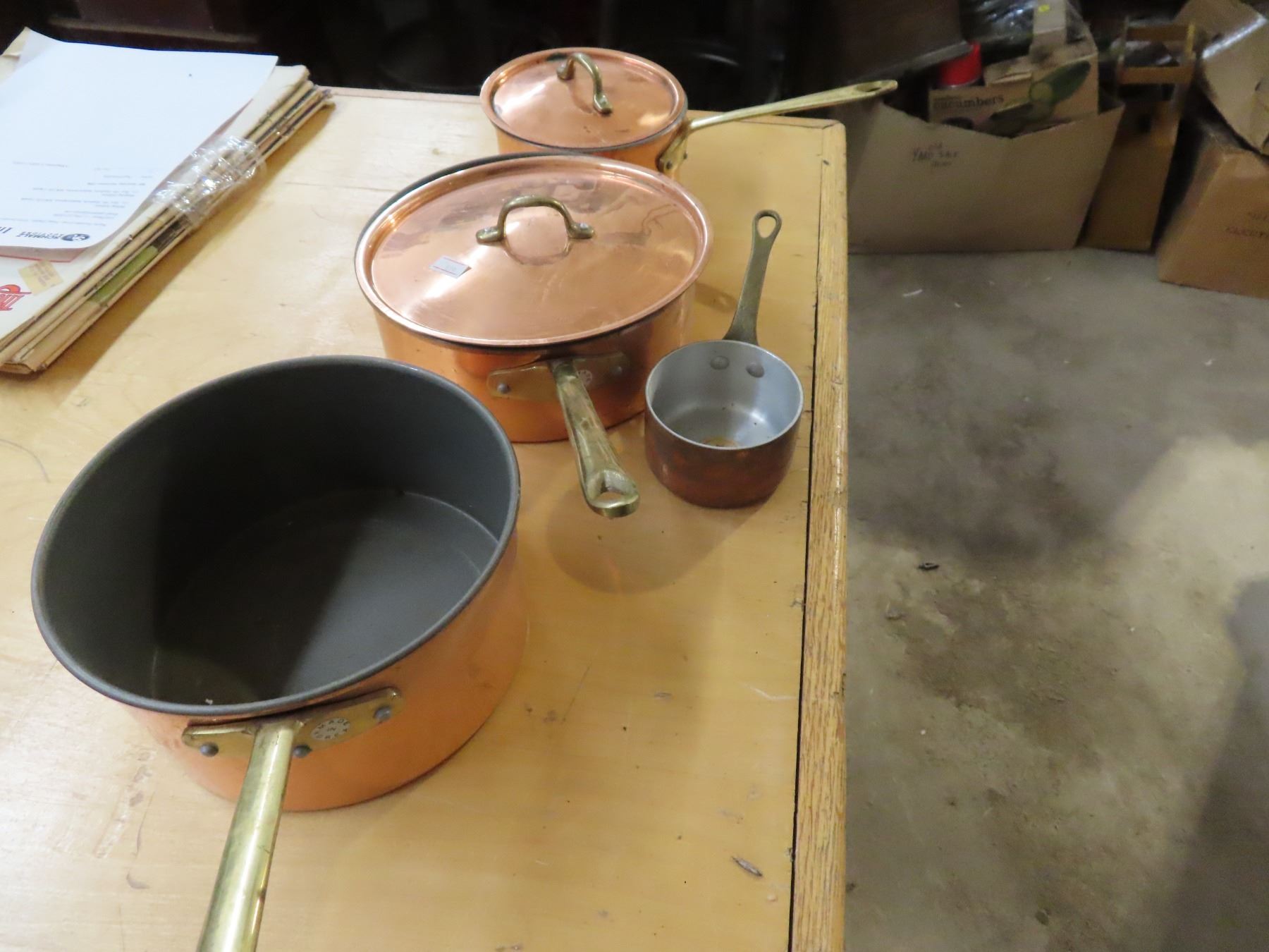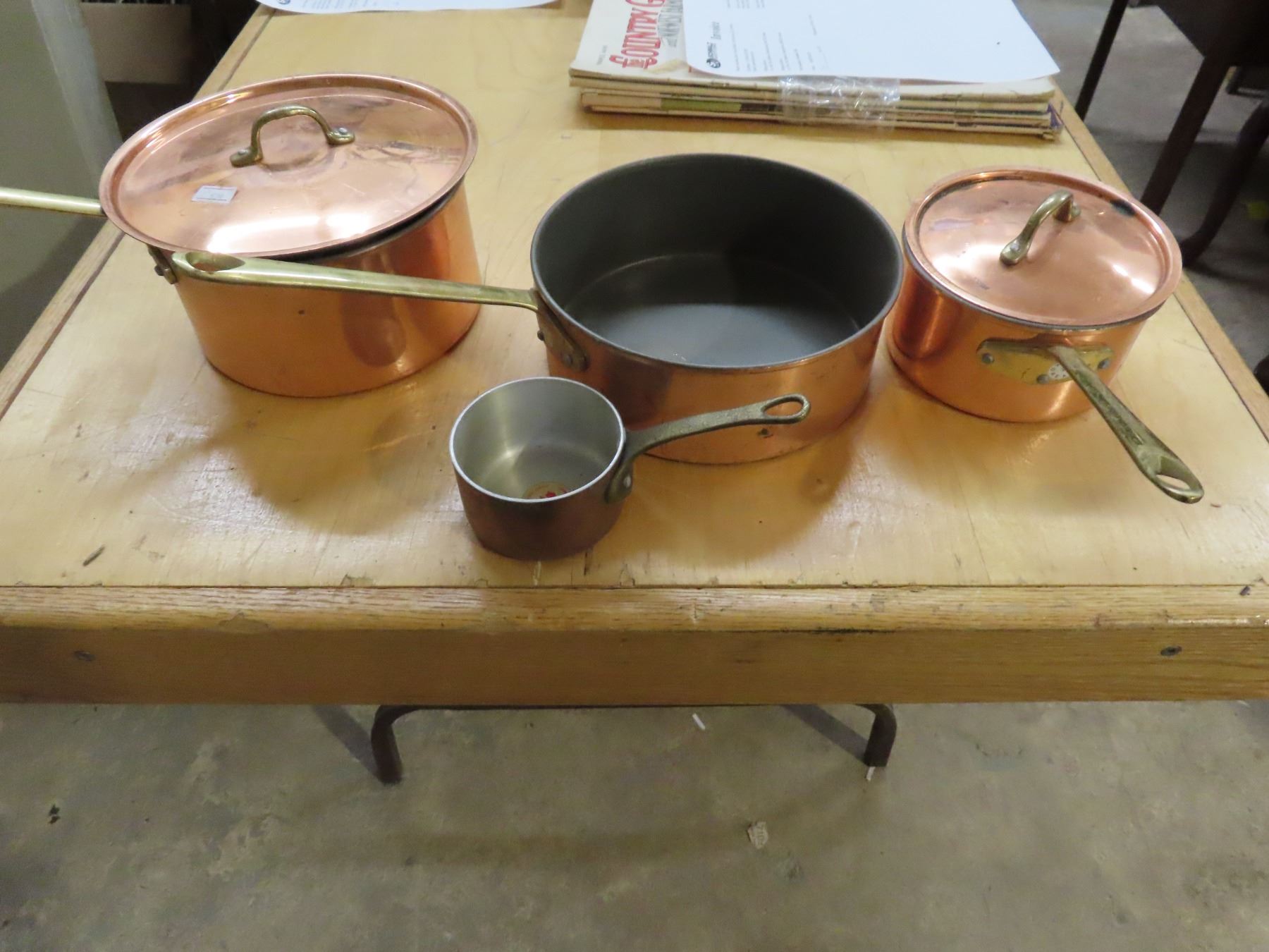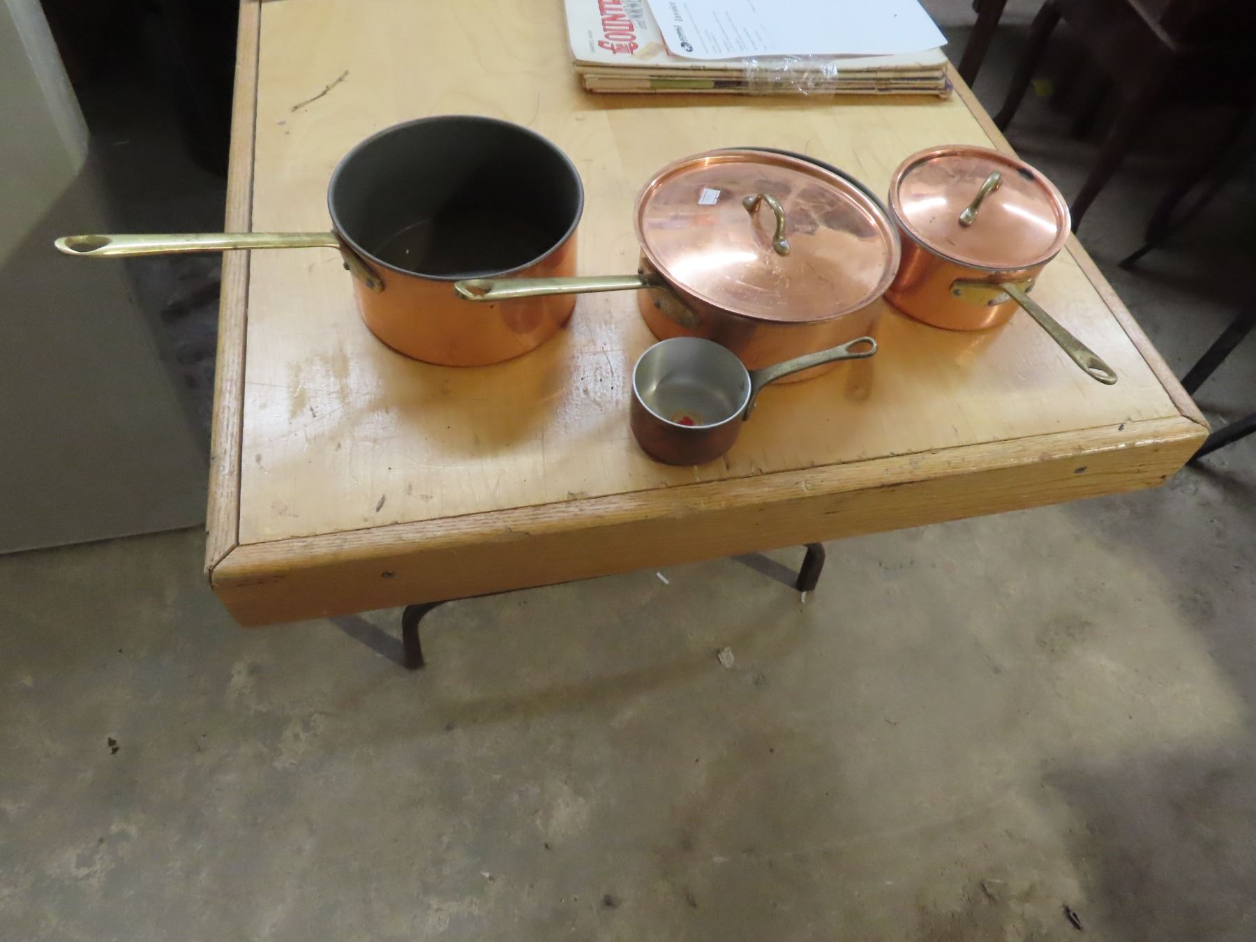 3 Copper Pots with Metal Measuring Cup