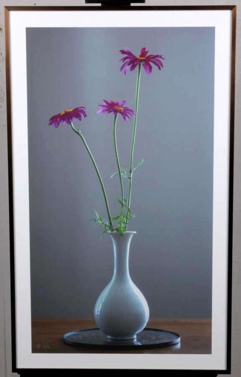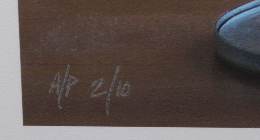 This digital still life photograph is an artist proof #2 of 10, and is of a total edition of 50 giclee prints (pigmented ink on archival matte paper). The art is signed in oil pen by the artist in the lower right in oil pen, and numbered in the lower left. Frame: 37.975" h x 23" w, Art: 33.75" h x 18.875" w