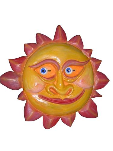 3-D "Sun" Sign from the Arcade Building at Roseland Park in Canadaigua, NY The eyes move and it is 54" diam. It is constructed of a wood base with foam and fiberglass covering.
