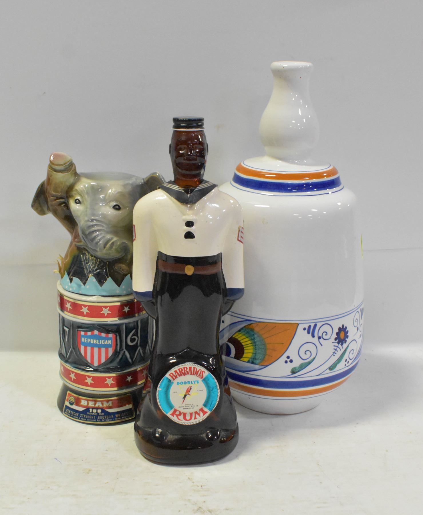 3 DECANTERS - JIM BEAM, RUM, GREEK