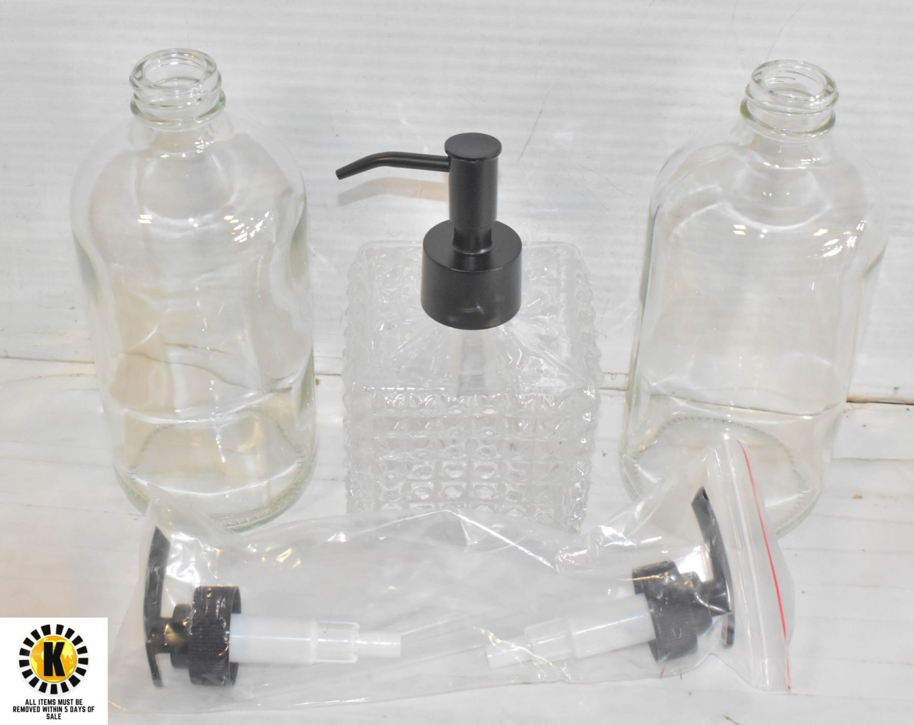 3 DECORATIVE GLASS JARS WITH PUMPS (NEW)