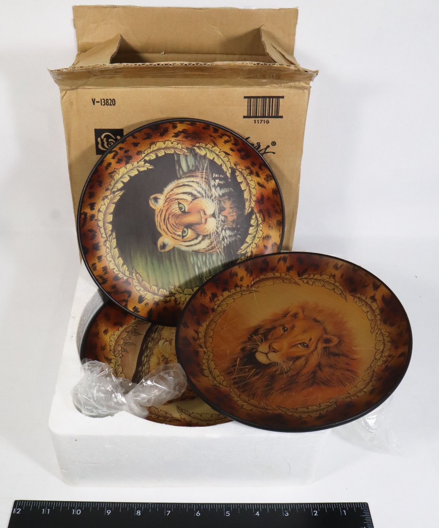 3 DECORATIVE PLATES WITH LARGE CAT DESIGNS