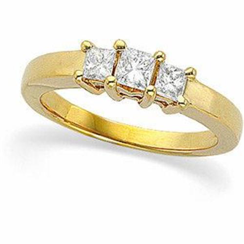 This 14k Yellow Gold 3 STONE DIAMOND ANNIVERSARY BAND is GORGEOUS! This 14k Gold WEDDING BAND features 3 PRINCESS CUT DIAMONDS with a TOTAL WEIGHT = .65 CARATS! The Diamonds are beautifully matched, 'SI' Quality and FINE 'H' Color. This stunning PRINCESS CUT DIAMOND WEDDING BAND is a Size 7 and it can be resized either larger or smaller. IF YOU BOUGHT THIS IDENTICAL DIAMOND RING IN A RETAIL JEWELRY STORE YOU WOULD PAY AT LEAST TWICE MY PRICE - GUARANTEED!